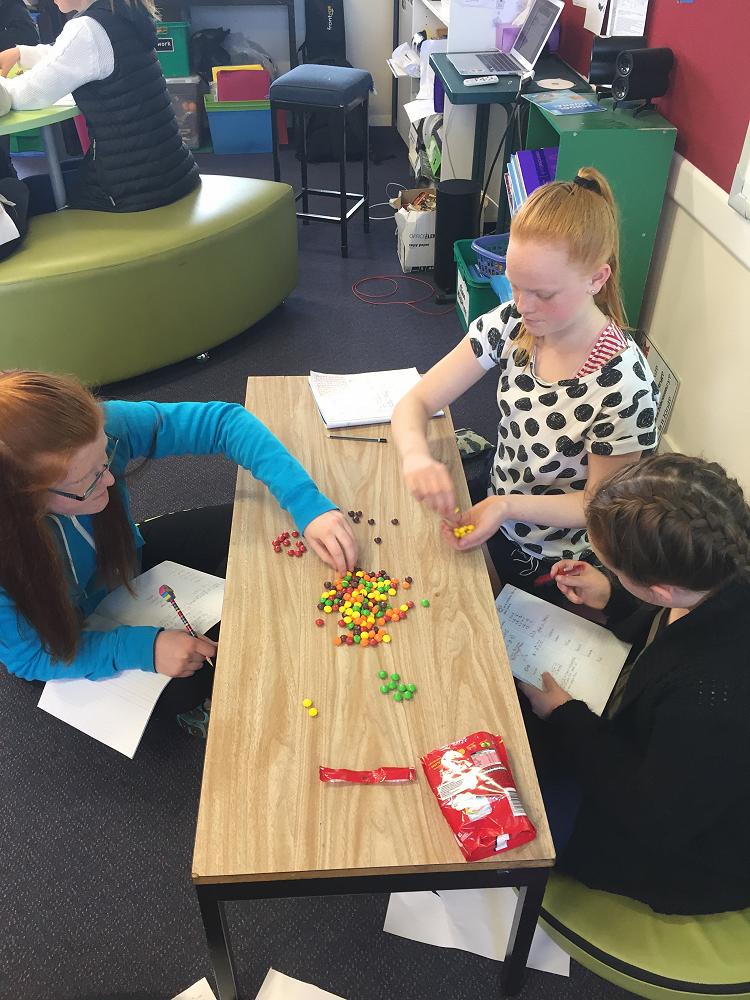 We got into groups of 4 and opened our packets of lollies. Some of us had jelly beans and others had skittles. Our objective was to sort the lollies into their colour groups and then work out the different ratios between the colours in each packet. It was fun to do something a little different and of course to eat our work when we finished.
