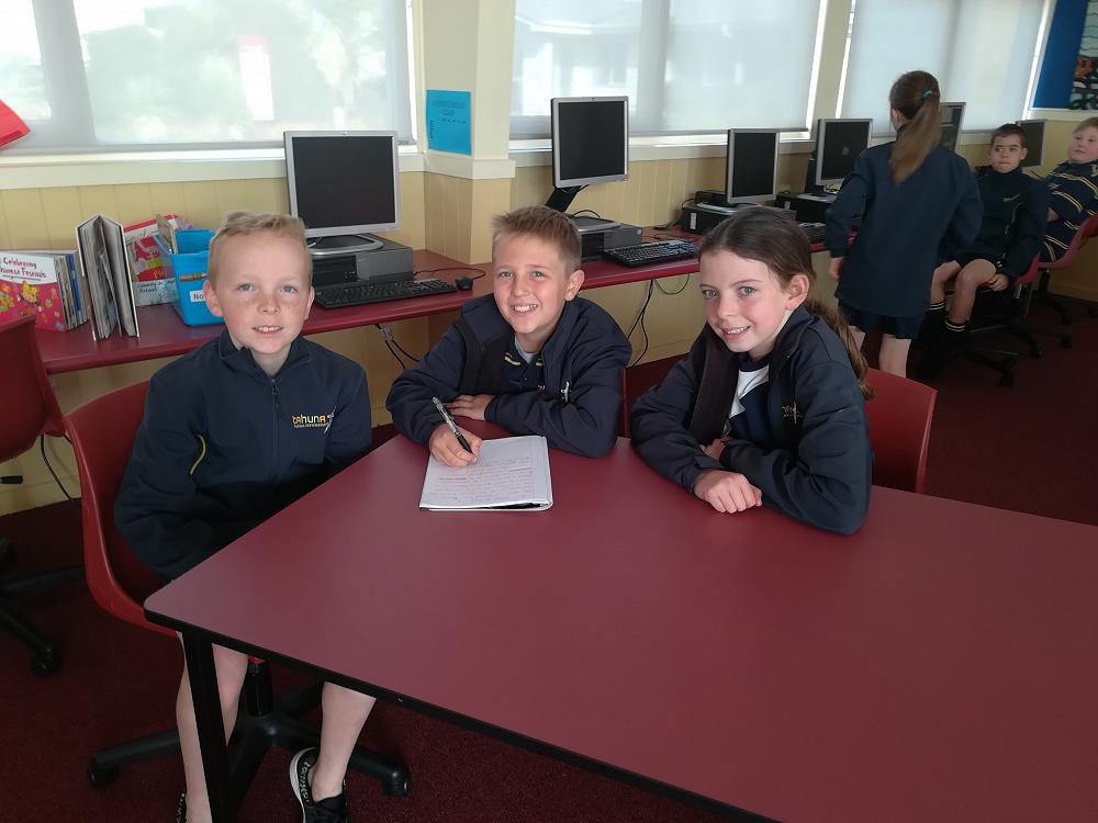 Kaela Freeland 11, Declan Viljoen 11 and Daniel Greer 11 all from room 8 at Tahuna Intermediate are really looking forward to going on the fundraiser train trip sponsered by the Lions Club of South Dunedin