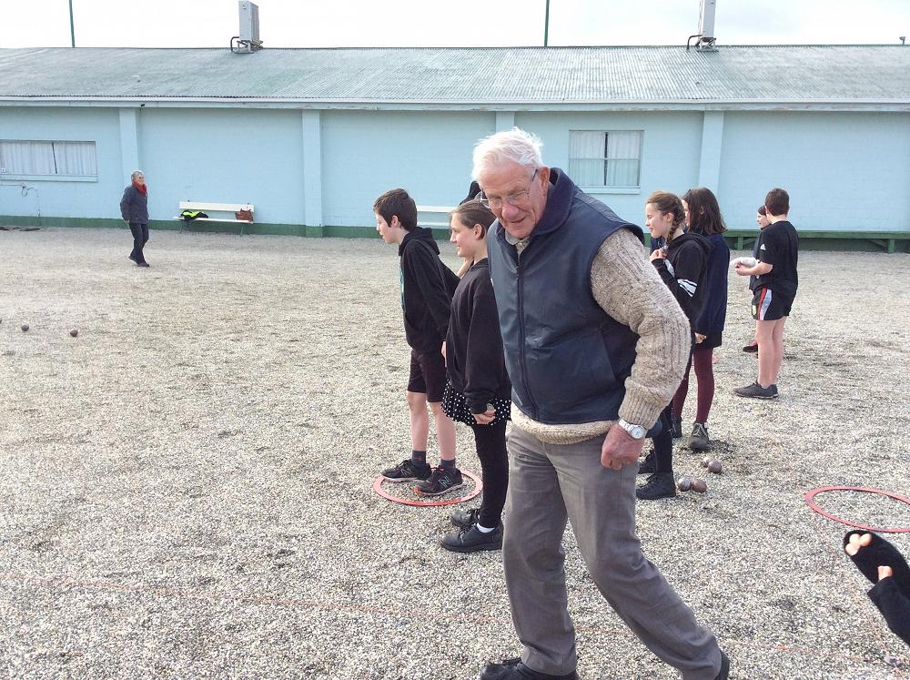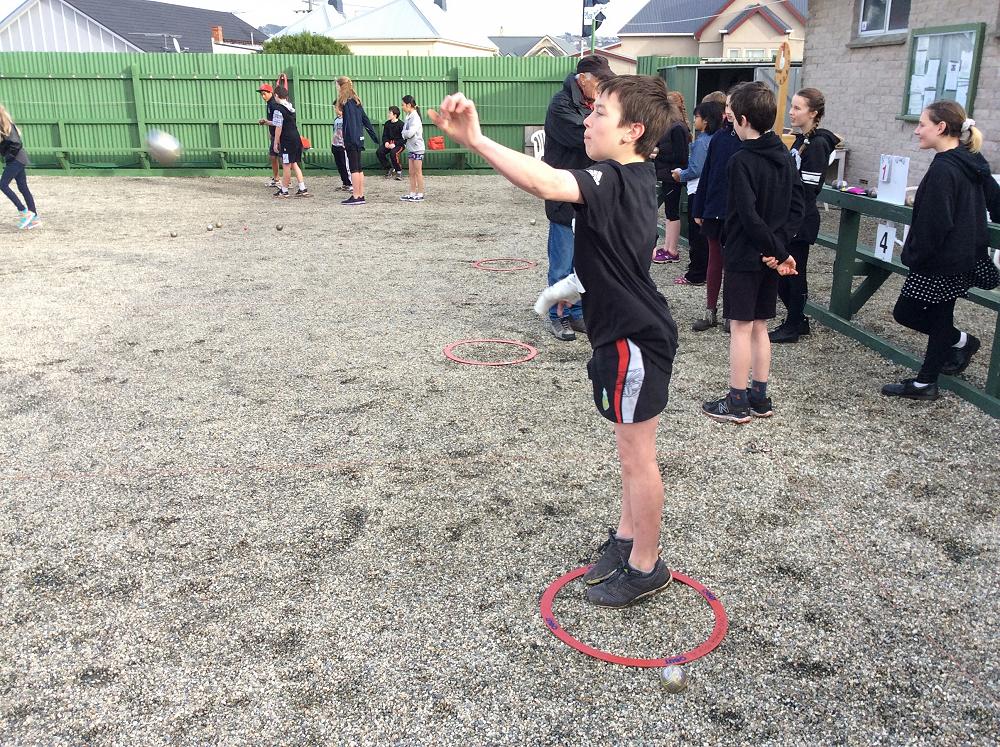 Members of the club very kindly worked with small groups of Tahuna students as they got a taste of a very popular French pastime.