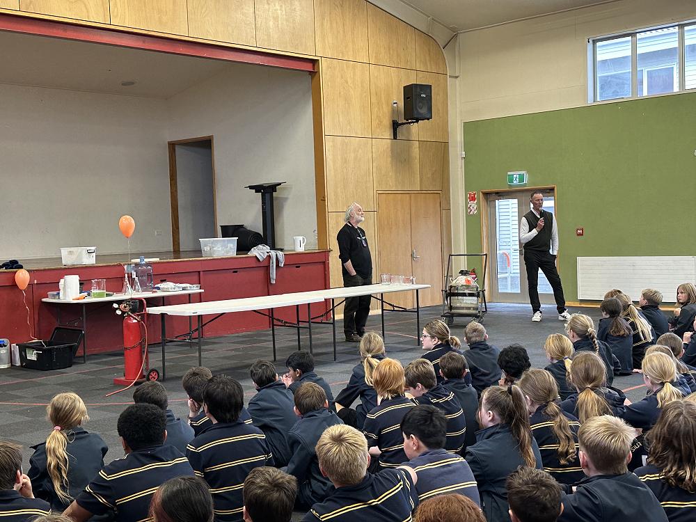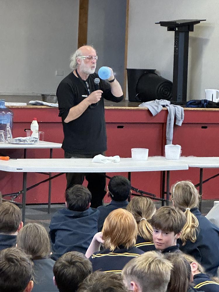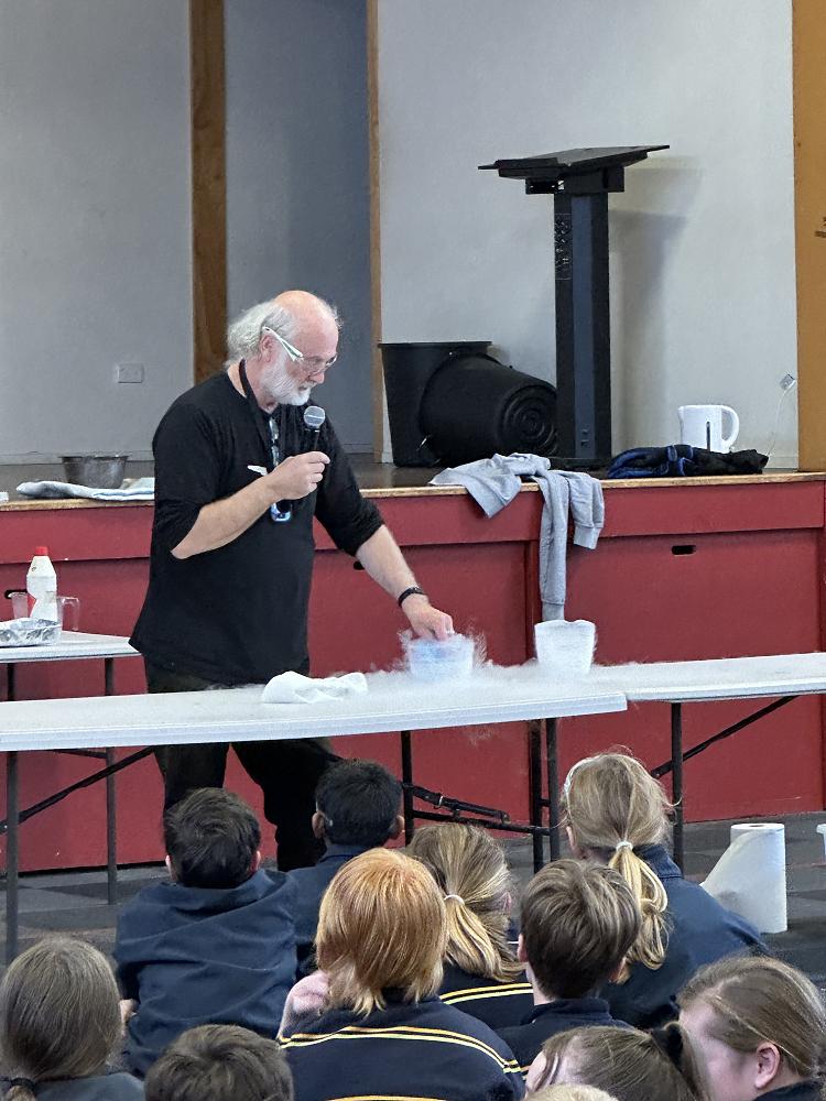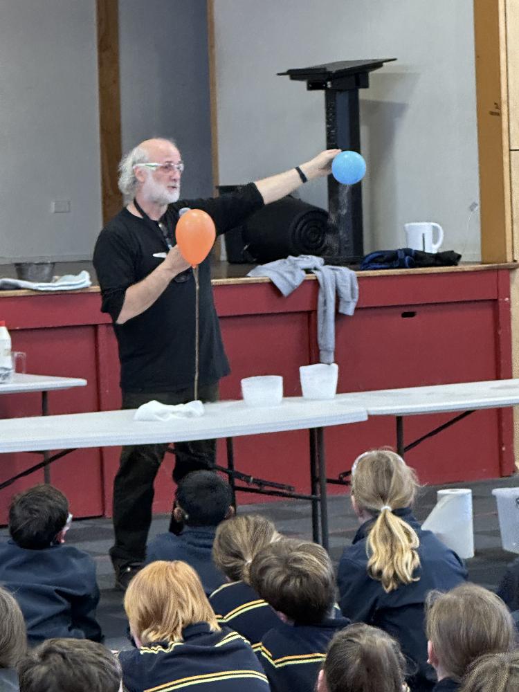 Week two saw a visit from Dr Dave Warren, who presented a science show that focused on the states of matter. He amazed the students as he shrunk a balloon in liquid nitrogen, only to have it reexpand when it hit the warmer air.