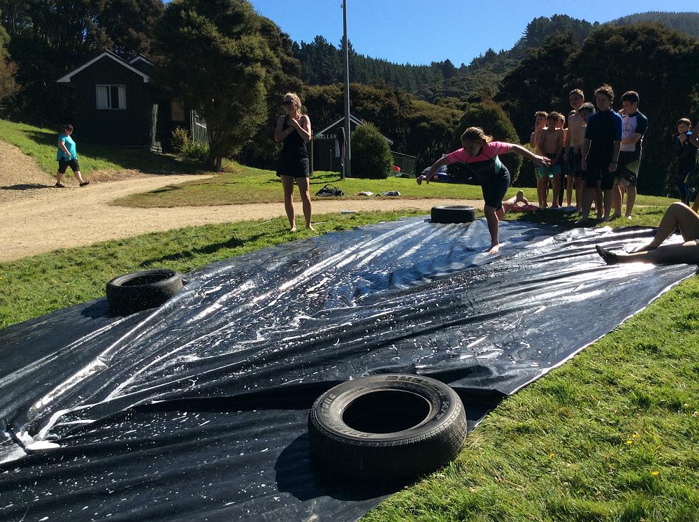 Driving up the hill I was really nervous, and I think others were as well. When I got out of the car I thought that this is our home for the week. On the first day, it was nice and chilled. We put up our tents and we also went to the water hole and water slide. It was fun!