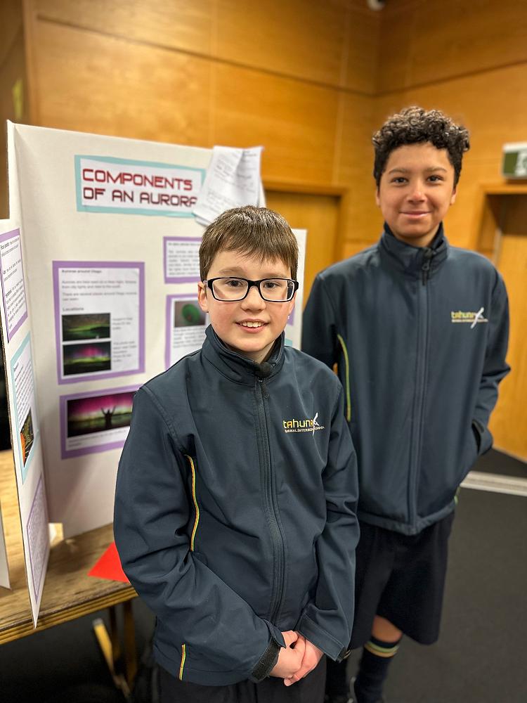 This week was the annual Aurora Science Fair. On Monday some year seven students took their boards down to the Hutton Theatre to be judged.