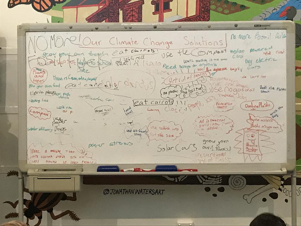 At the Museum we got to do fun things like look at the tornado machine, earthquake machine, and flood recreation. We discussed climate change and come up with ideas for how we can help. Our ideas included big ones like reducing fossil fuels and smaller changes we could do to help like not using so much wrapping in our lunch boxes.