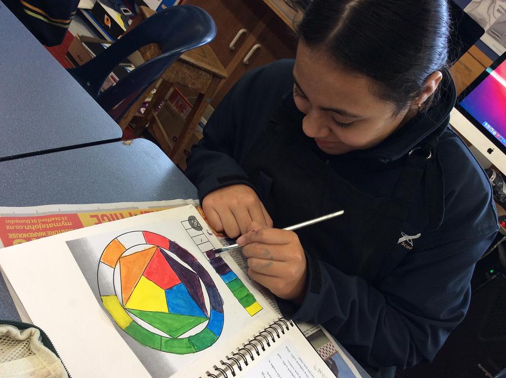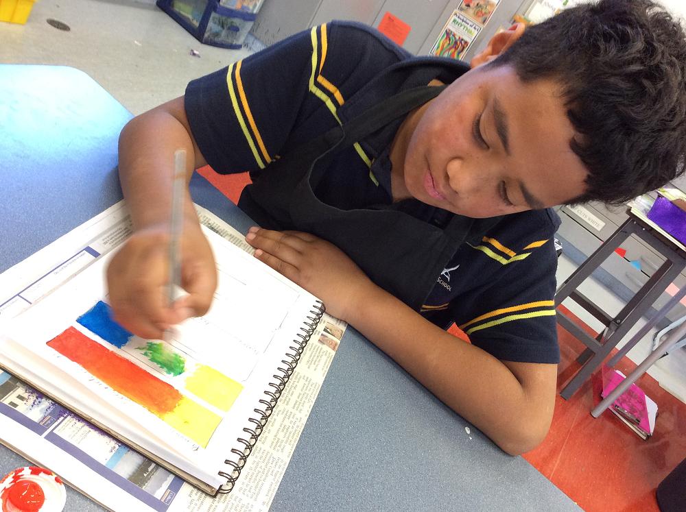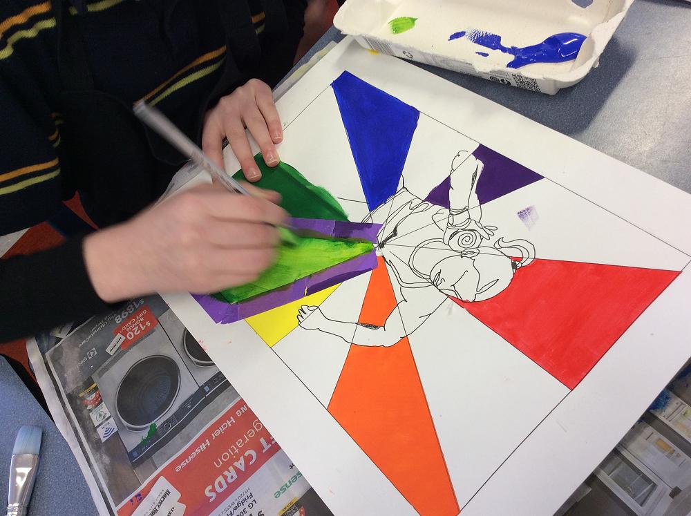 The Year 7 students are learning about colour theory and painting the colour wheel to surround their Olympic athletes.