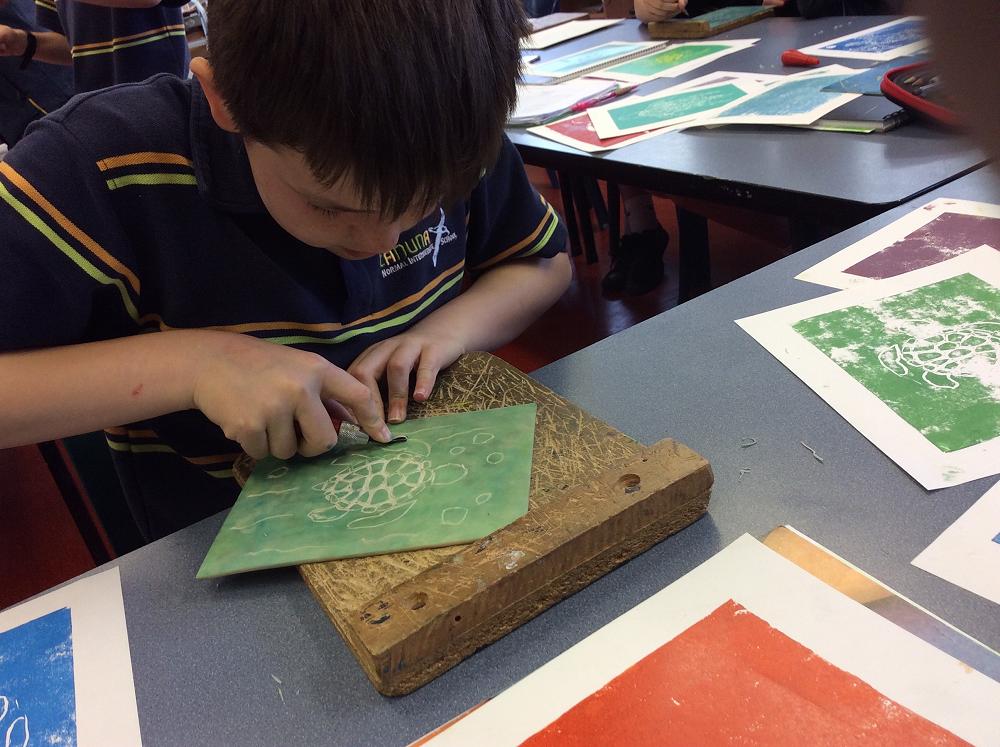 Enjoy looking at pupils showing the printmaking process and their quality prints.