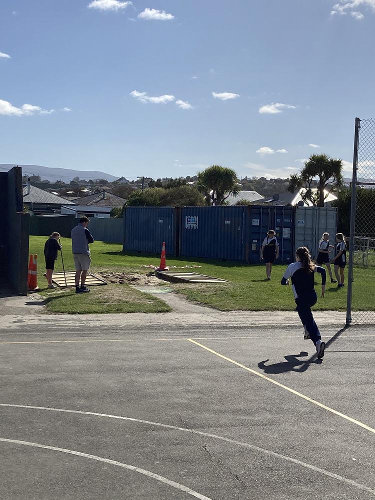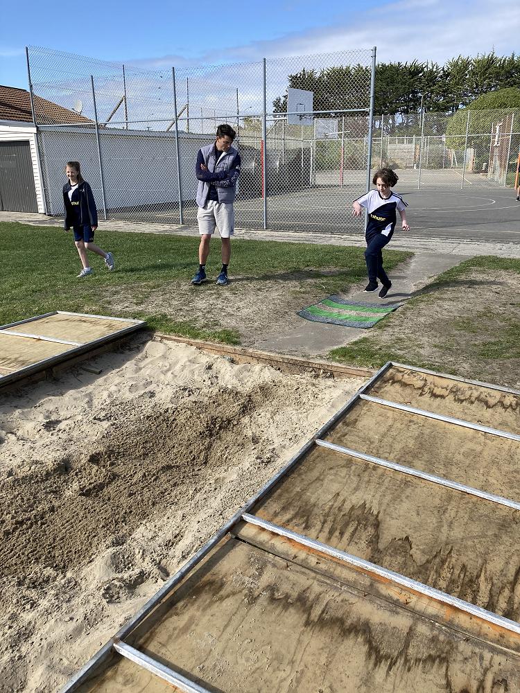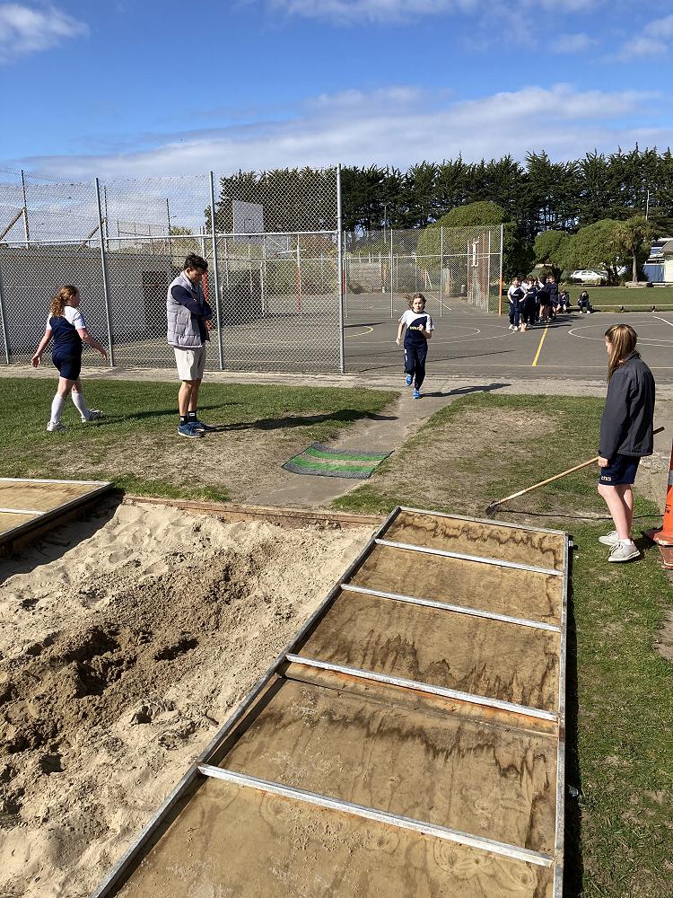 Room 20 are out putting what they have learned in previous weeks into practise into the Long Jump pit.