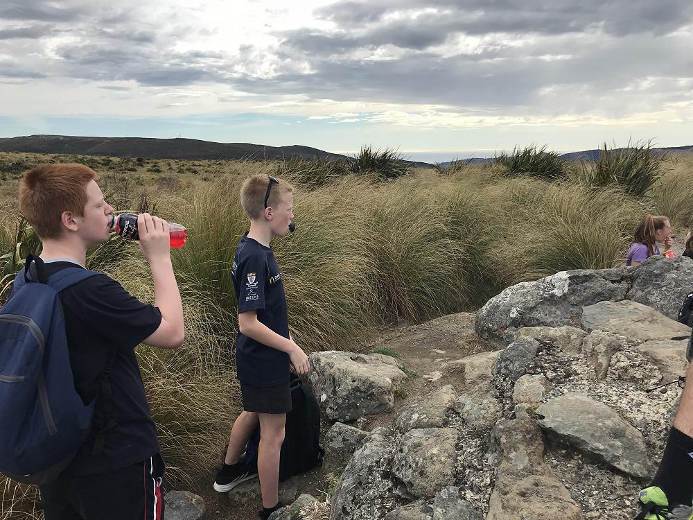 On Wednesday the 25th of October Rm 6 and Rm 3 went on a tramp along the Pineapple track we left the school at 8:45 am and returned at 3. While we were going up the hill rm six’s bus broke down in the middle of the road and the other bus had to come and get us so that was an exciting start of the day. The first bit of the tramp was straight up the hill a lot of people found it hard but I found it quite easy. When we stopped for morning tea we got told by Mr. Drummond that there was hidden tinned pineapple along the track, but I don’t think any of us found any. After another 2-3 hours of walking, we stopped to have lunch at a really old milking shed that had slowly broken away through the years, but before we left Mr. Drummond told us a short story on what the milking shed use to be. We packed up our lunch and carried on down the track we had nearly finished our tramp but before we did we went to the Woodhaugh Gardens most of us ran over to the pool but the ground of the pool was really slippery and about 3 people fell in it was actually quite funny. The bus arrived about 10 minutes later and we all got onto the bus and went back to school. It was a really hot day and I’m glad our teachers choose that day because on Thursday it was pouring with rain. I had a really good time and I think everybody else did too.