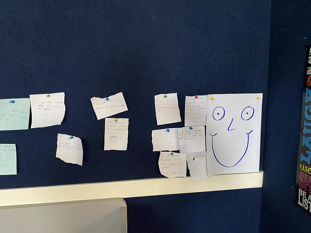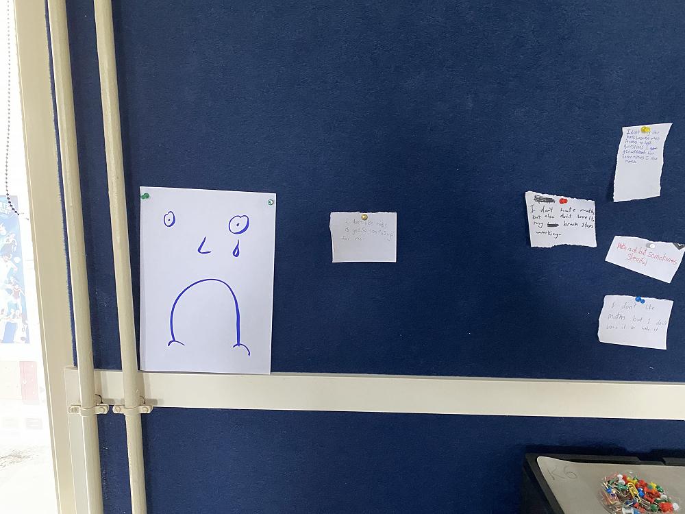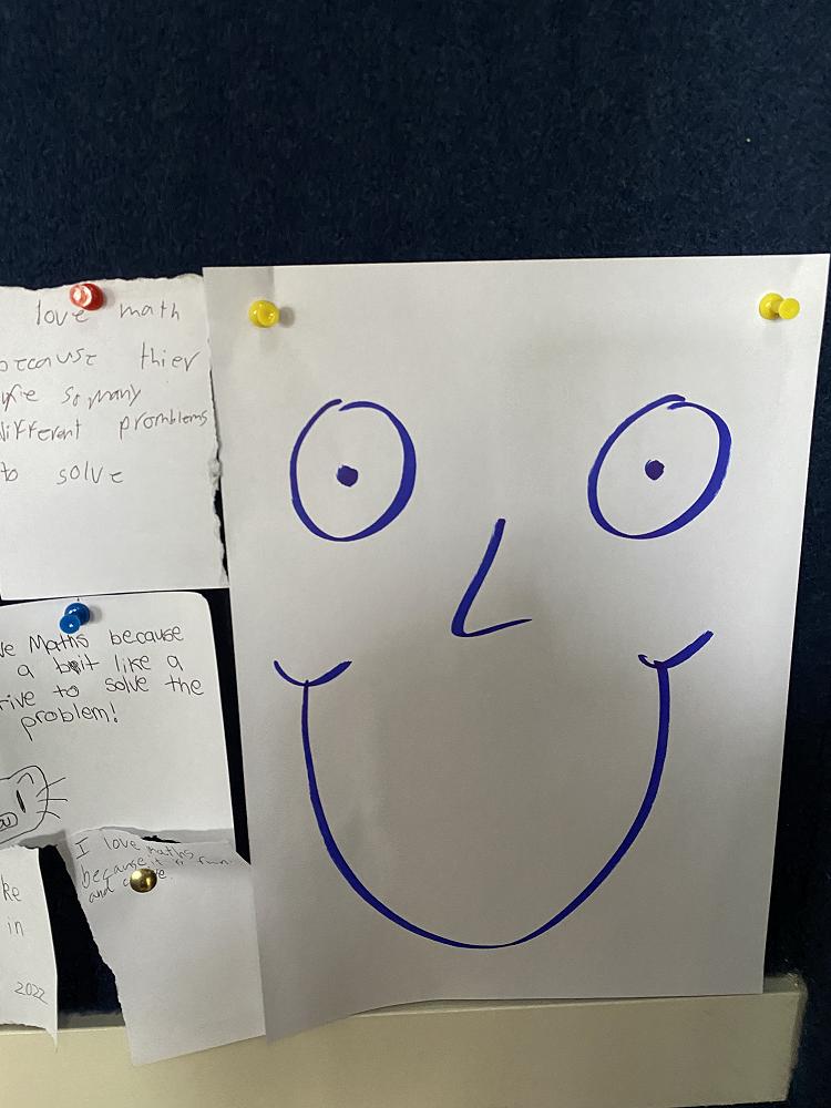 We also made a continuum (as seen in the picture above) showing how students felt about maths (from happy to sad) and a reason for their thinking. Almost all in the class sit in the middle or have a positive view towards maths.