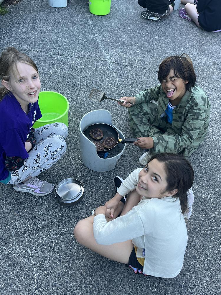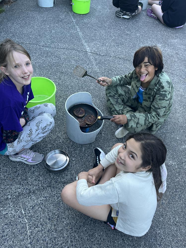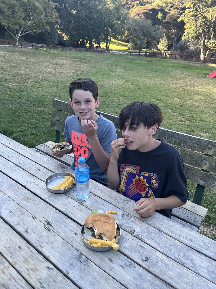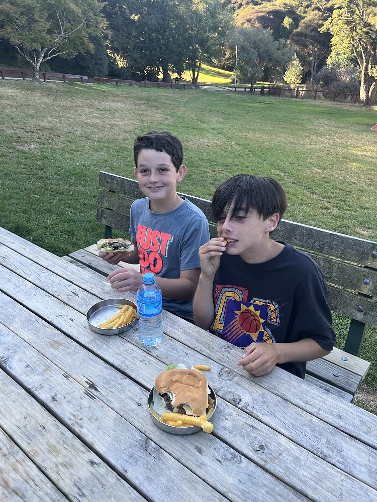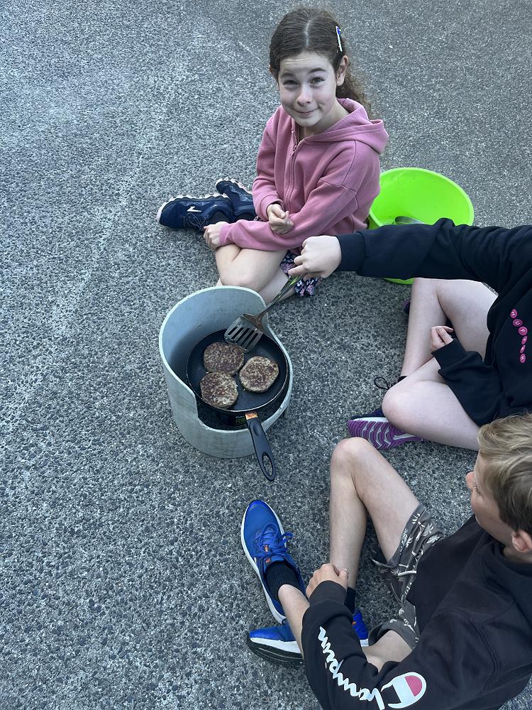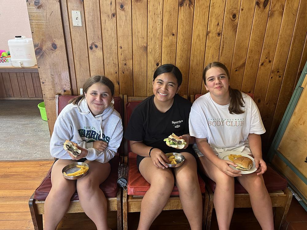 On the first night we had burgers using gas cookers and we cooked in groups. On my burger I had … bottom bun meat two cheese slices lettuce top bun - a solid 8/10.