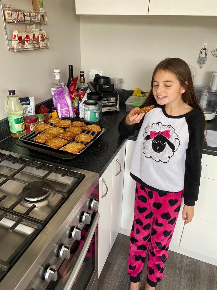 At my mum's house I play with my dog, bake and watch some movies. I also have gymnastics on zoom Tuesday’s, Thursday’s and Saturday’s only for one hour (used to be two). Most days we see my older sister Jassmyn through the gate when she goes on walks to the beach.