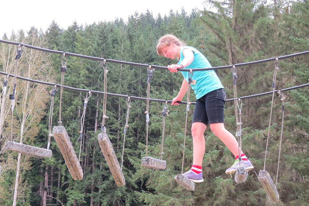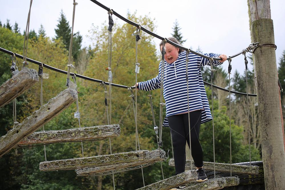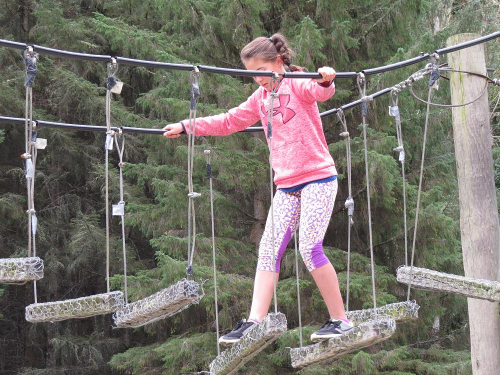 As I climbed up the tires to walk across the Shrek Bridge I was thinking it was not a challenge. But as soon as I put my foot onto the bridge I FELT HORRIBLE. I was so high up & the planks were separated so you had to jump to each of them and some of them were on angles. When I got to halfway I went to put my foot down but I just couldn’t put my other foot down this plank was on a angle and I was really high up. Luckily Harlem was down at the bottom encouraging me to keep going. When I finally got down I was really proud of myself and I was thankful of Harlem. Then I decided to try some other stuff before I gave that a go again.