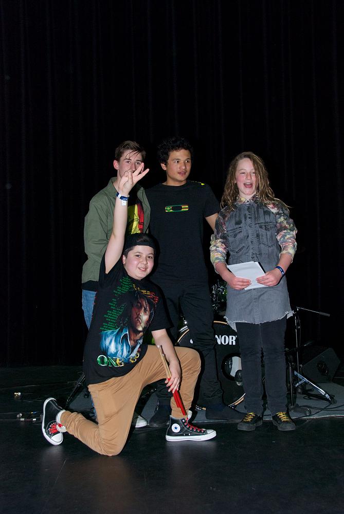Two Tahuna bands which consisted of 6 boys and 2 girls took to the stage on Wednesday night for the annual Rockshop Bandquest competition of 2015 and smashed it! Acoustic Heroes and Rodeo Clowns took to the stage and performed two songs each, which showcased their amazing vocals and musical talents. Ella Caird, Harper Rouvi, Hannah Wybrow and Kiringaua Cassidy of Acoustic Heroes were second up on the night and did a fantastic rendition of a Charlie Puth and Megan Trainor hit - "Mavin Gaye". They got the crowd clapping and joining in which added to their next song; making it a real standout - "Pumped Up Kicks" by Foster the People. They were unfortunate to miss out on awards for the night but judging from the crowds reaction, definitely received the peoples choice.