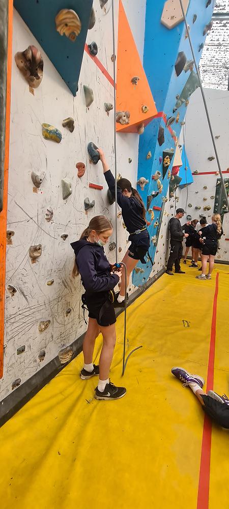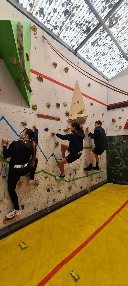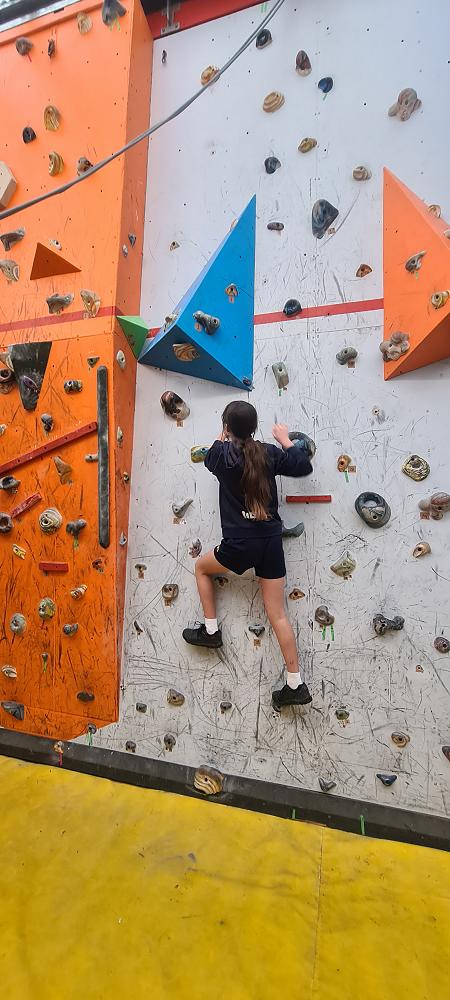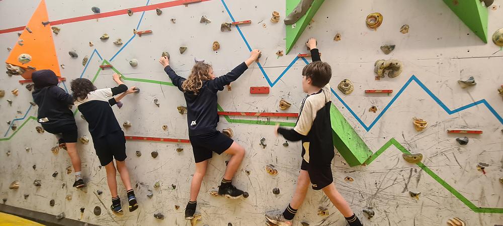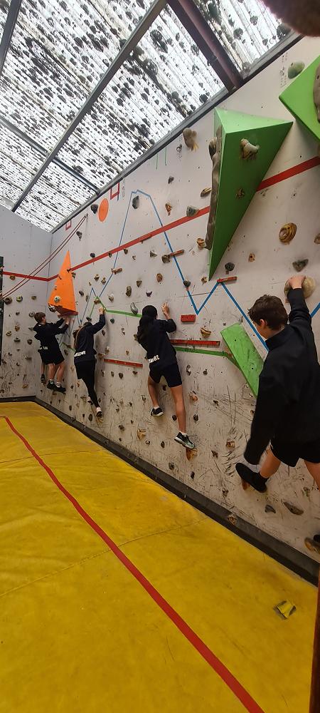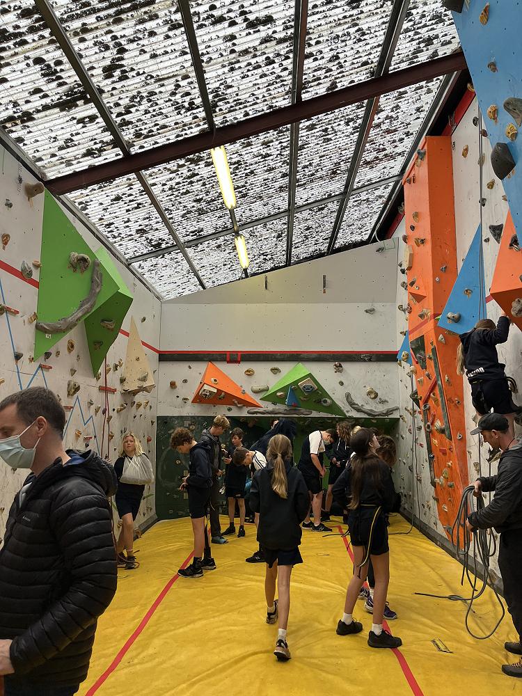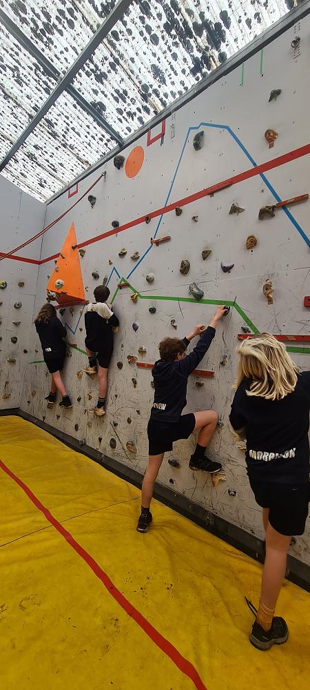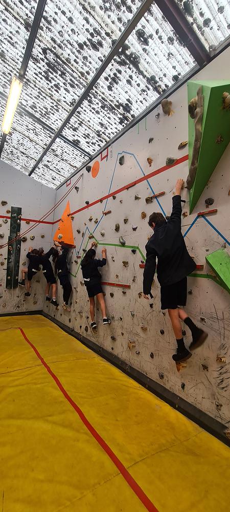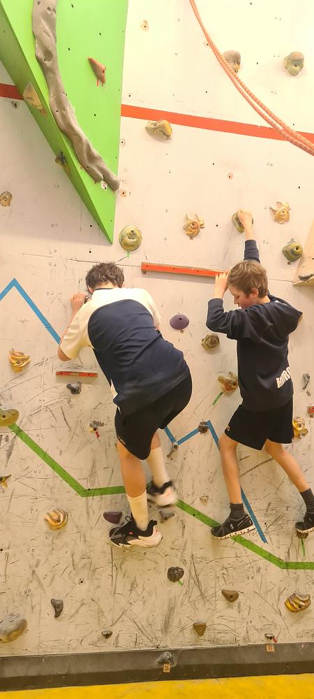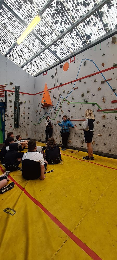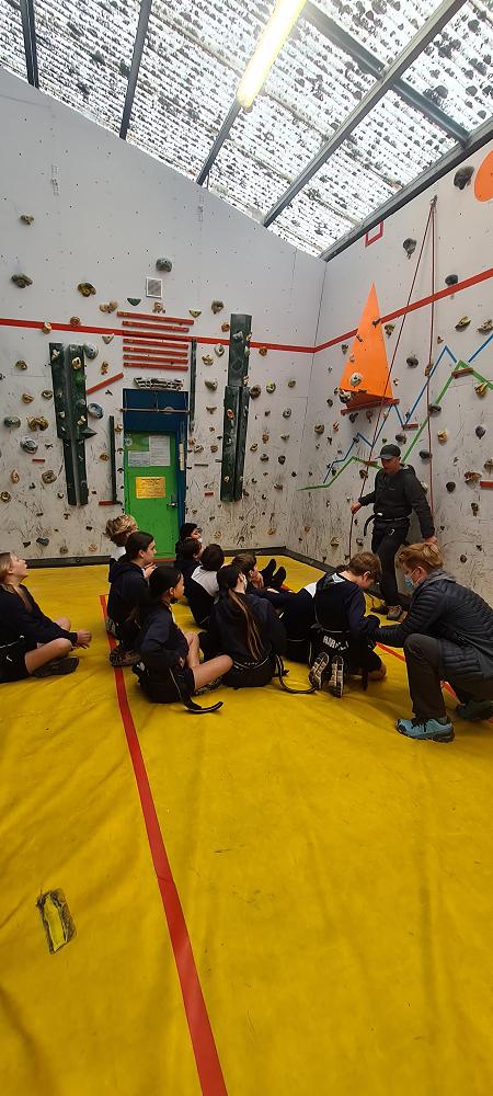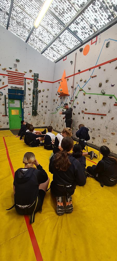On Thursday, we went to Logan Park for our first Rock Climbing session. We were split into two groups so we would have smaller numbers for rock climbing. One went climbing and the other went for a walk with Miss Lang and we swapped over after an hour and a half. When it was our turn for rock climbing we started with bouldering to get our confidence up. Bouldering is when you climb on the wall lower down without a harness. We then learnt how to put on the harness properly and to check for 'the three c's'. After that we learnt how to belay. Belaying is the job of looking after the person on the wall and making sure they have enough rope and are safe. One person holds the rope and the other person helps feed the rope to the other person. Belaying is a super important job and you have to hold onto the rope super tight to make sure the person is safe. When it was my time to climb it was so fun. The hardest part was finding your footing and then coming back down. It was a fun experience and I can't wait for Long Beach next month.