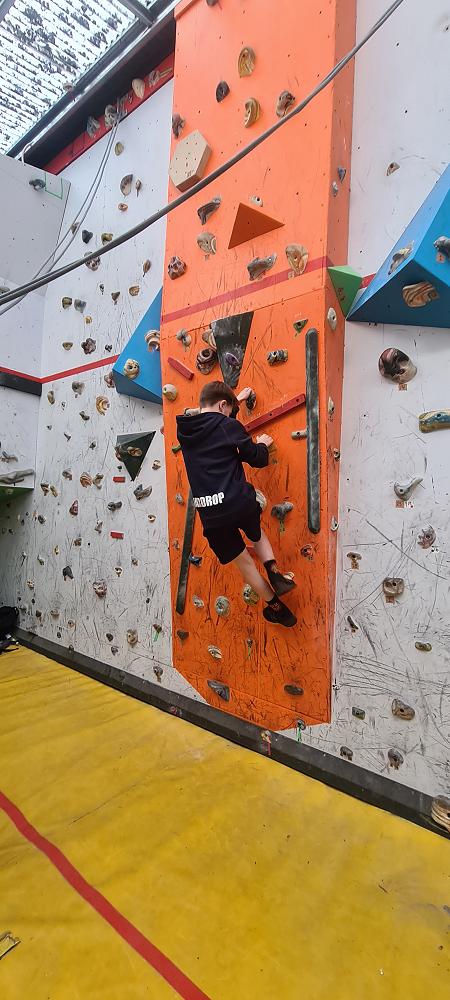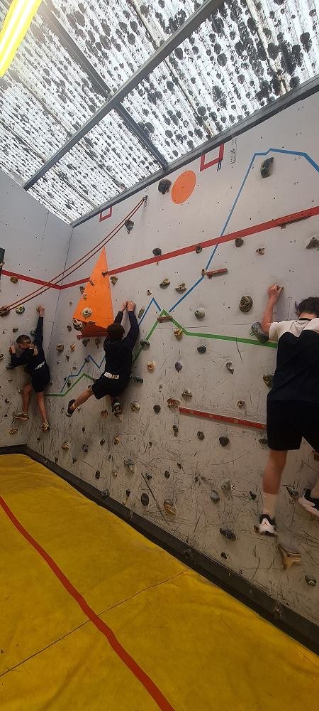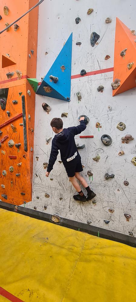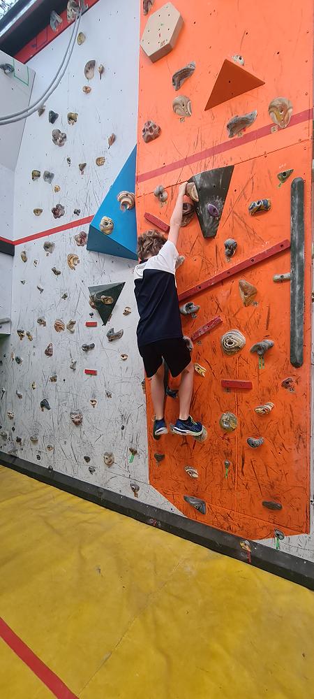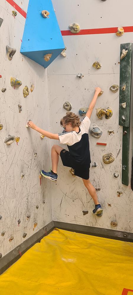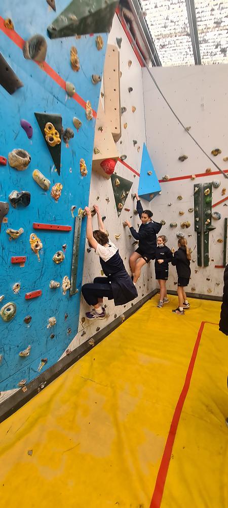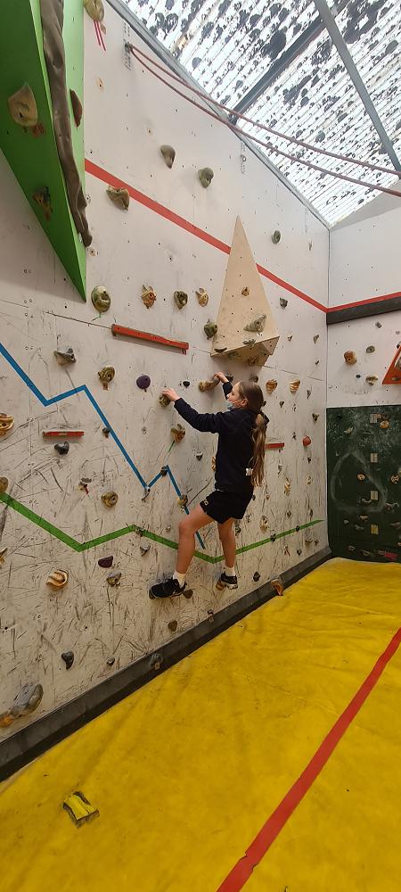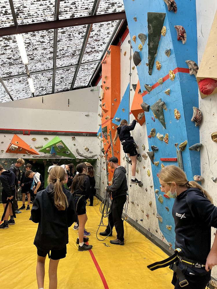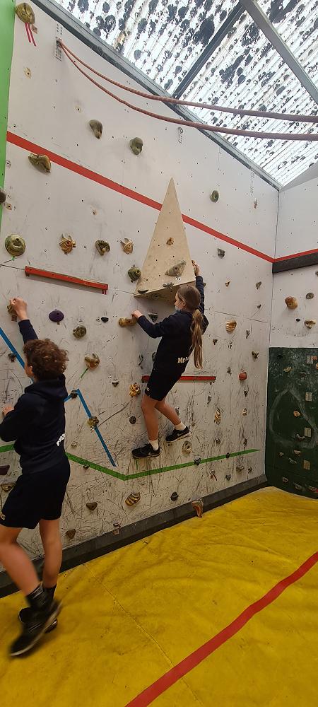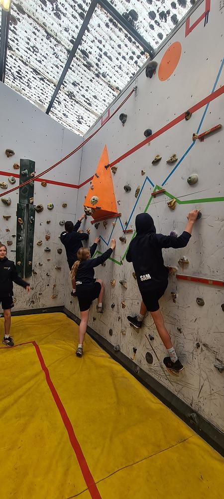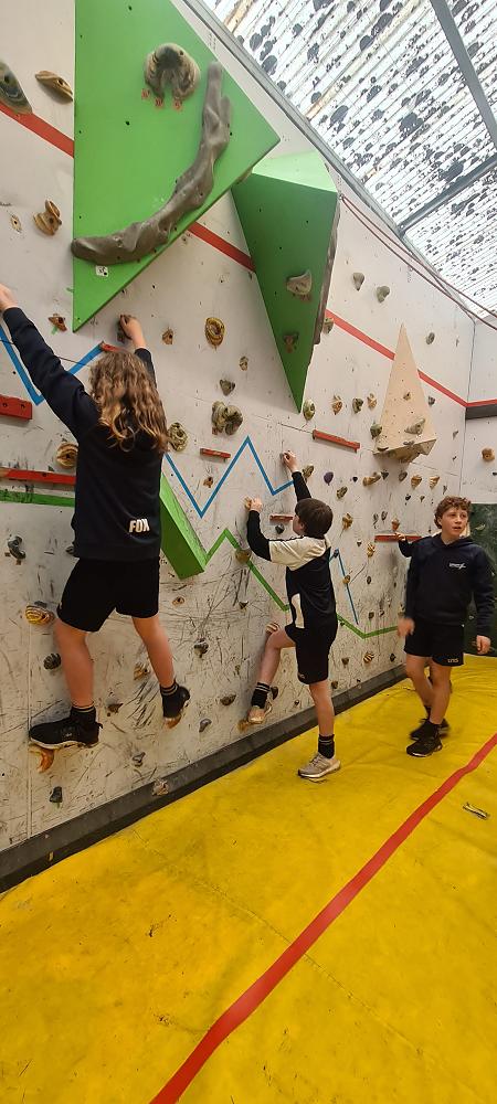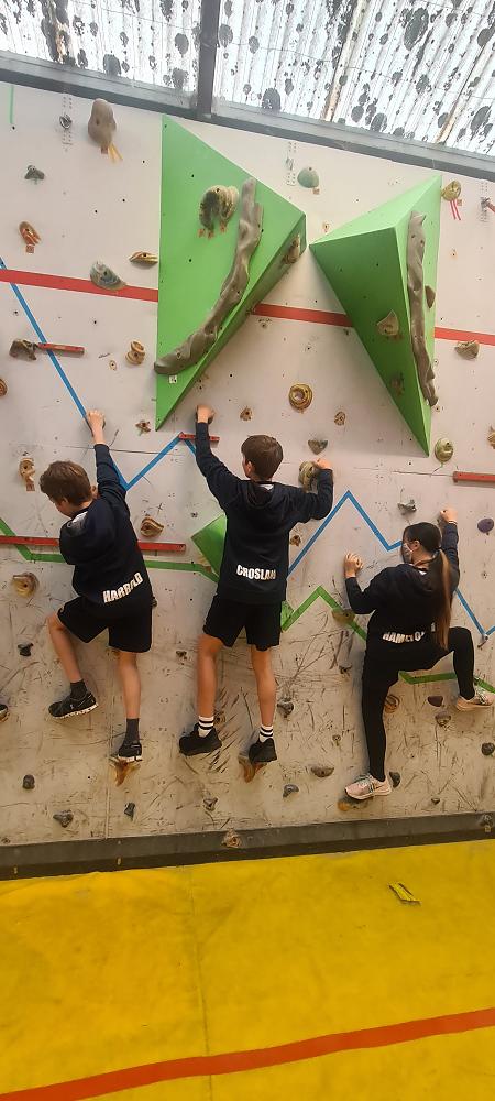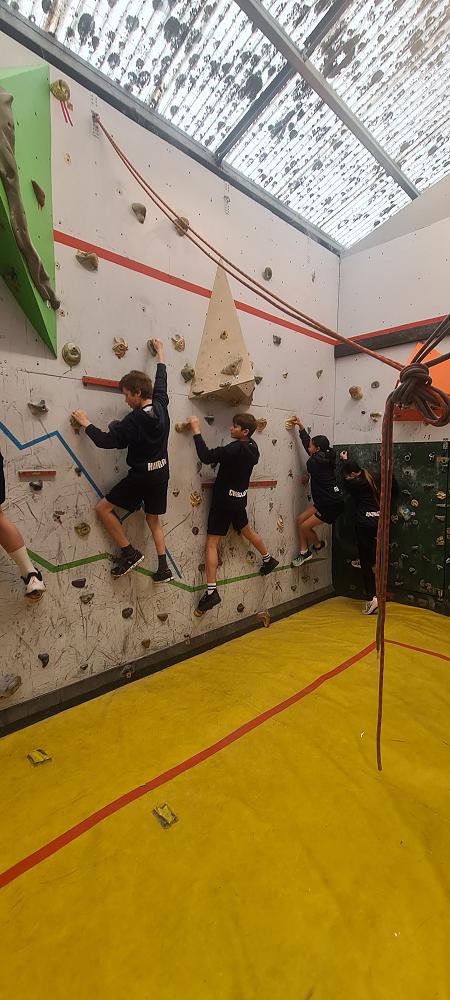 On Thursday, we went to Logan Park for our first Rock Climbing session. We were split into two groups so we would have smaller numbers for rock climbing. One went climbing and the other went for a walk with Miss Lang and we swapped over after an hour and a half. When it was our turn for rock climbing we started with bouldering to get our confidence up. Bouldering is when you climb on the wall lower down without a harness. We then learnt how to put on the harness properly and to check for 'the three c's'. After that we learnt how to belay. Belaying is the job of looking after the person on the wall and making sure they have enough rope and are safe. One person holds the rope and the other person helps feed the rope to the other person. Belaying is a super important job and you have to hold onto the rope super tight to make sure the person is safe. When it was my time to climb it was so fun. The hardest part was finding your footing and then coming back down. It was a fun experience and I can't wait for Long Beach next month.