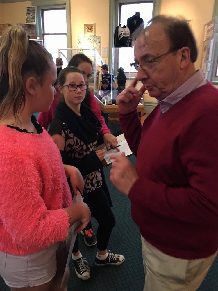 Then Miss Cooper and Miss Brocklebank rounded us all up and took us upstairs to start the Sports Hall of Fame quiz. We collected our clipboards and then met Ron, our tour guide and quiz helper. Ron guided us through the museum to the main exhibition where he talked to us about the Hall of Fame and how people get into it. There were lots of different displays with information, photos and equipment from famous retired sports people. We walked around and answered as many questions as we could to the quiz, finding out a lot of information!