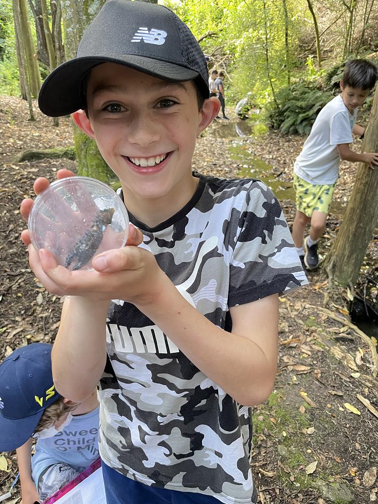 Our stream study was fun, check out Ashton's souvenir. There were flatworms, physa snails, freshwater crayfish, and possibly leeches but we needed a bit more time to identify them.