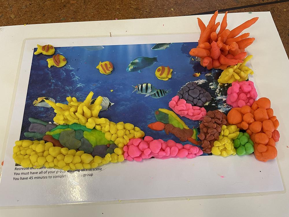 On Wednesday morning we did a 3D art activity where we needed to recreate the picture we were given. It was fun mixing the colours, moulding the shapes and creatures. The winning groups used great texture and colour blending.