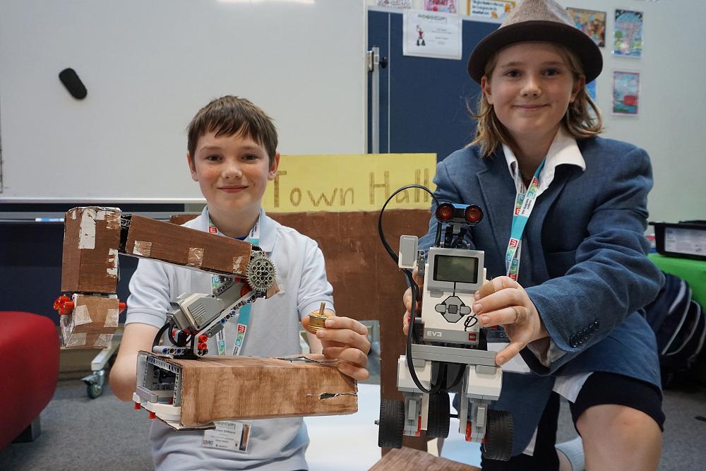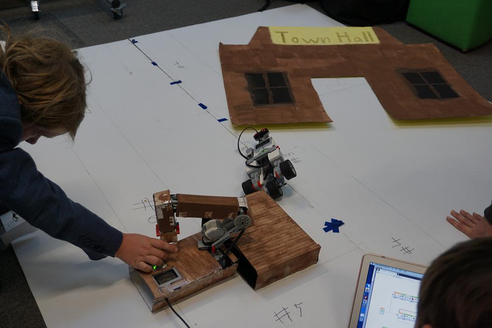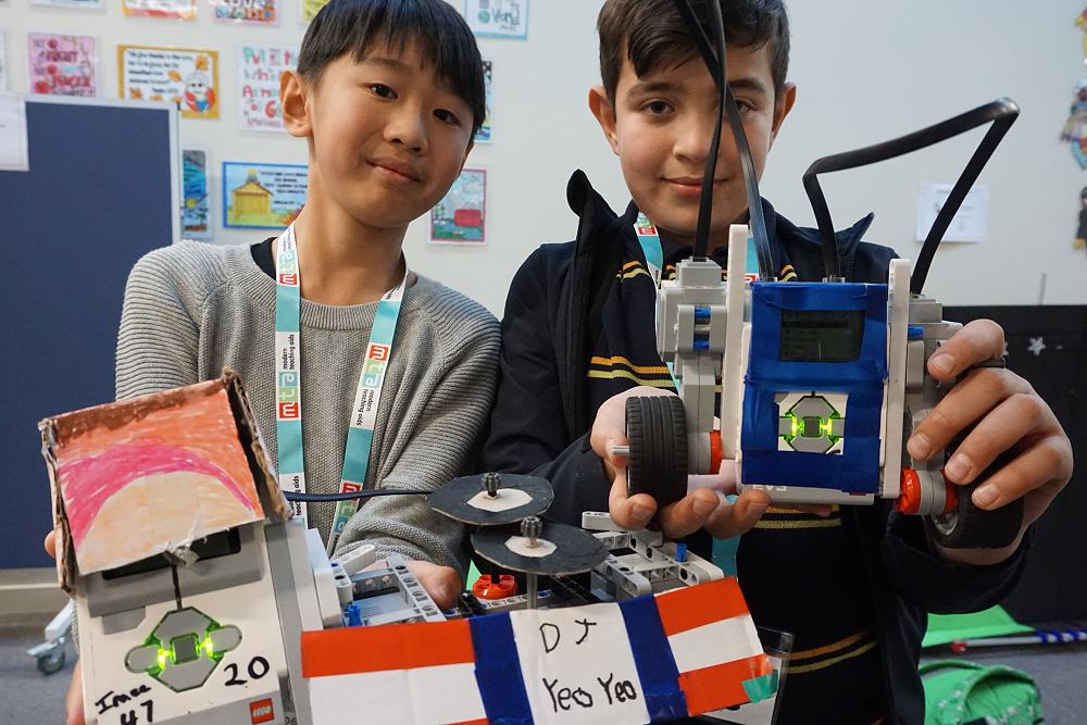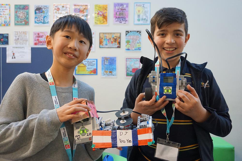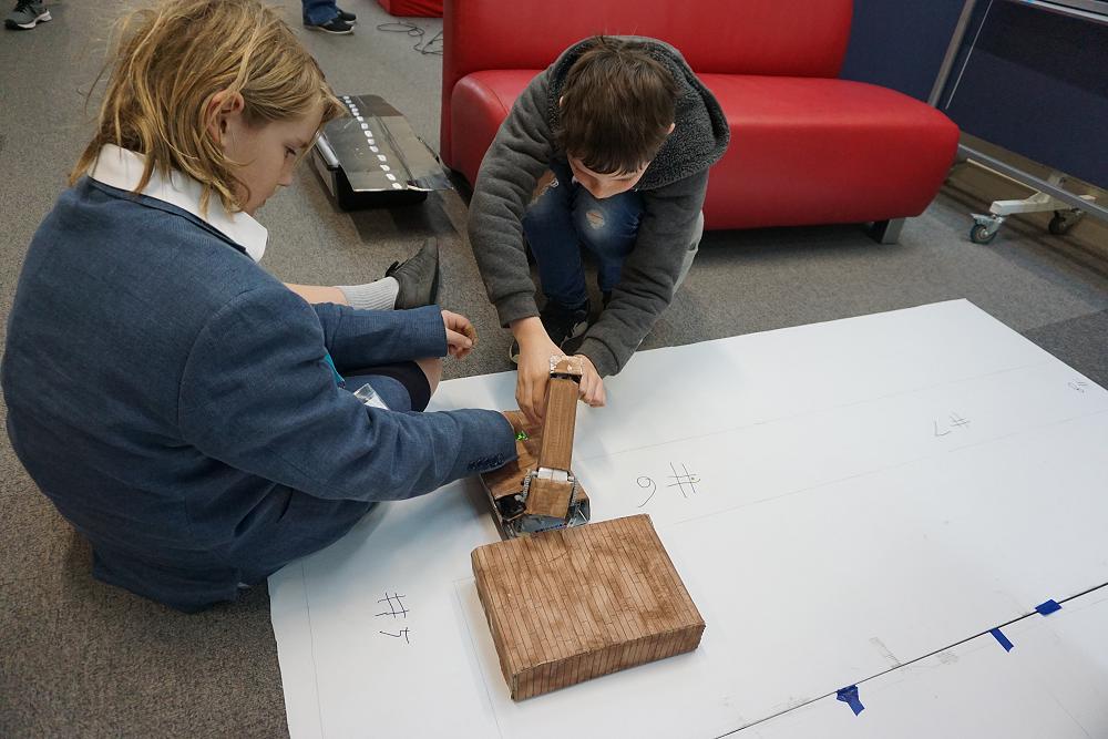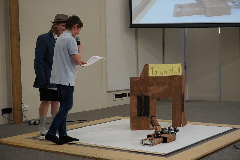 Our two teams were competing against six other teams in the theatre competition. This competition involved building and programming the robots to present a short play. All the movements of their robots were choreographed to music or through their own narration.