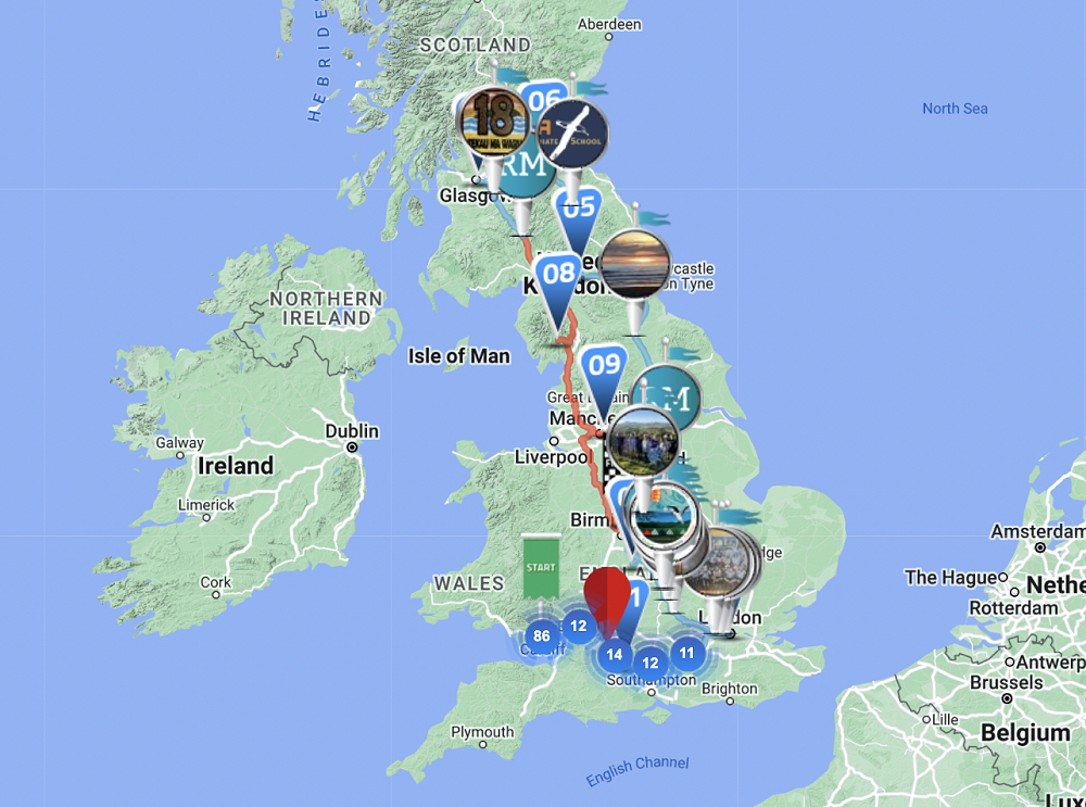 As we reach different milestones we can learn more about that particular area in the UK and we can see ourselves on Google street view; however, every time we do, we're on a major motorway haha.