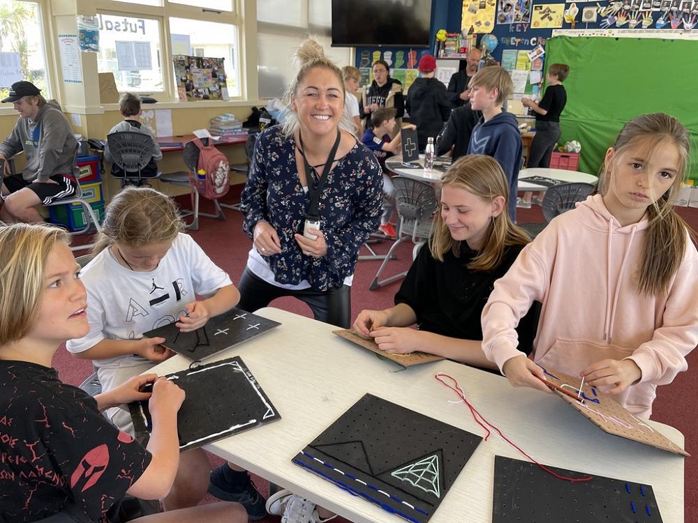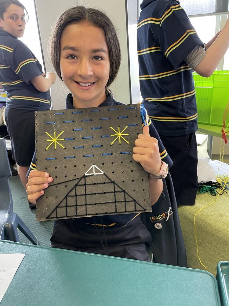 Tukutuku or arapaki is a type of ornamental weaving. It is used mainly to form the inside walls of wharenui (meeting houses). The tukutuku panels are placed between the carved wall slabs of the wharenui, and, like the carvings, convey a complex language of visual symbols. During Marae Week we used wooden, black panels with horizontal holes and weaved with coloured wool. We brought our mihi's to life through visual art. During these activities we learnt about Kowhaiwhai patterns, which are patterns that tell a story and each pattern has a meaning.