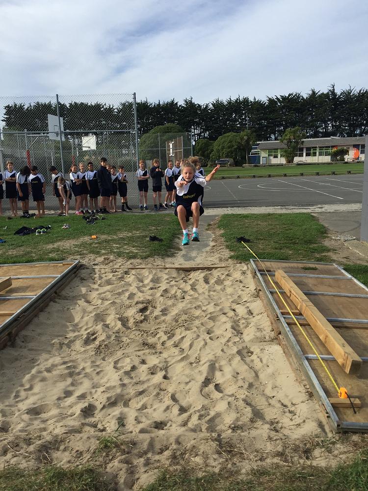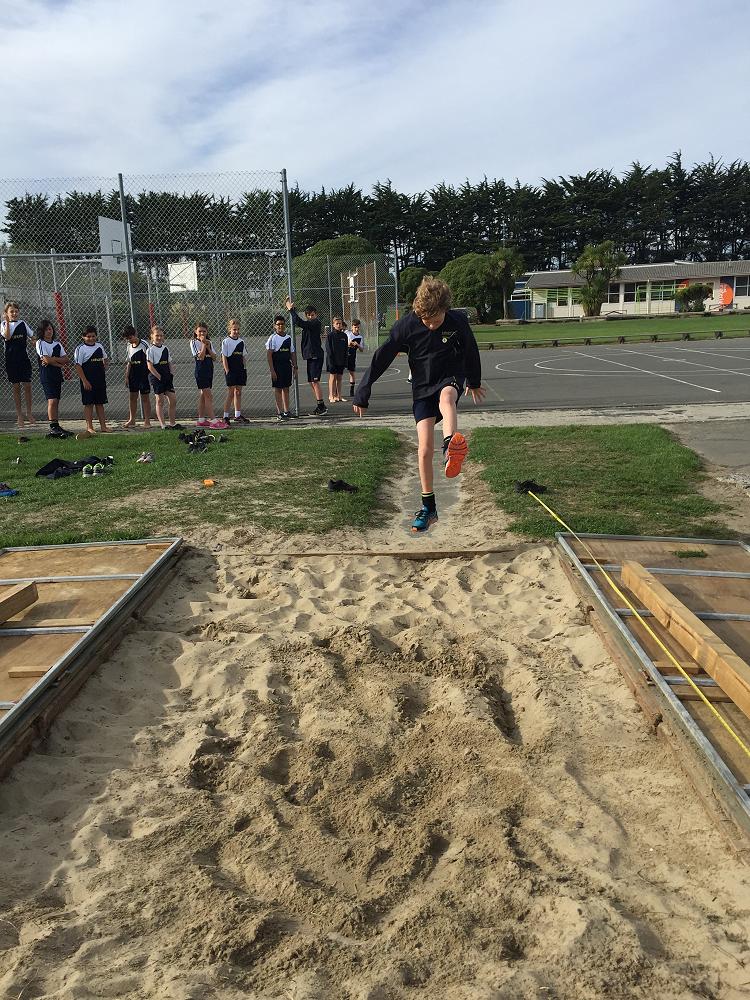 In Room 13 we have been doing athletics. First we started doing relays and sprints and now we are doing long jump at the long jump pit. We had to run up to the pit and jump. Some techniques we found good were having our legs out like a pike and having a high jump, we also found it good having your arms out. Some people had their shoes on and others had their shoes off. We found that if you had your shoes off the landing in the sandpit is hard. Many people took their shoes off so they could get a faster run up and not get sand in their shoes. Many people had quite a bit of height doing this. Here are some photos of what people looked like doing long jump.