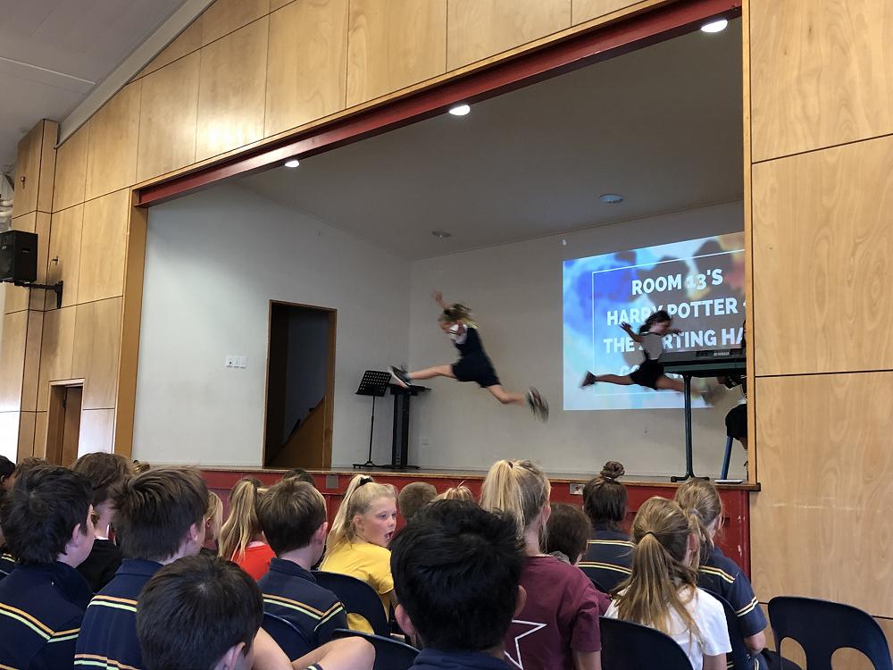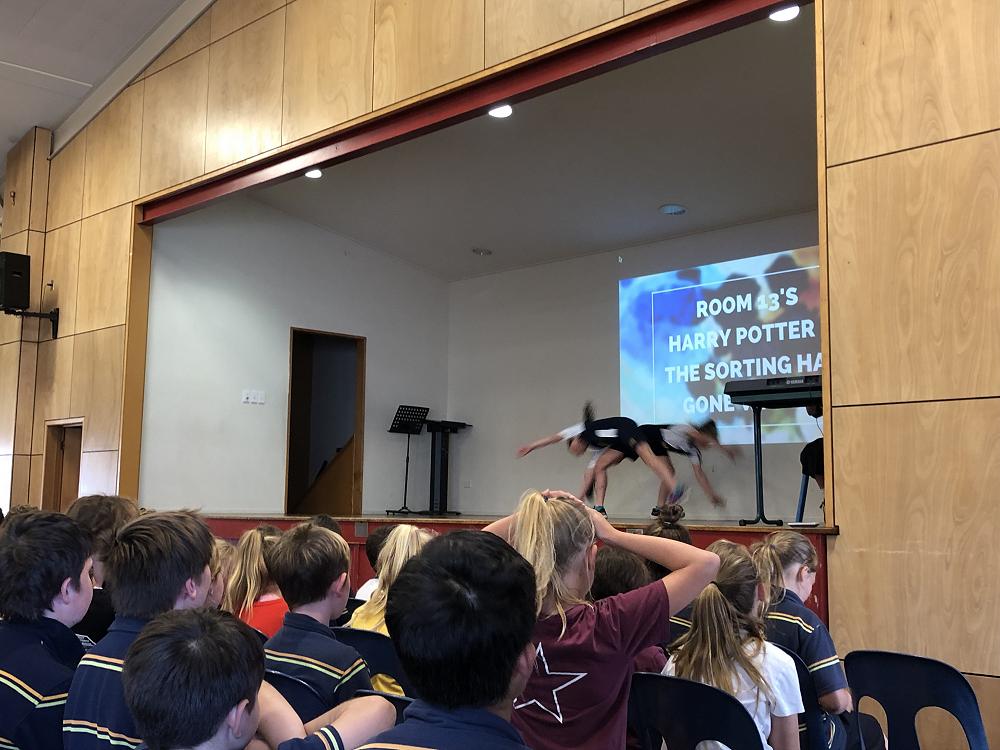 The theme of the Assembly was Camp so we organised two camp performances- HAH Gymnastics and the Harry Potter Skit group to perform.