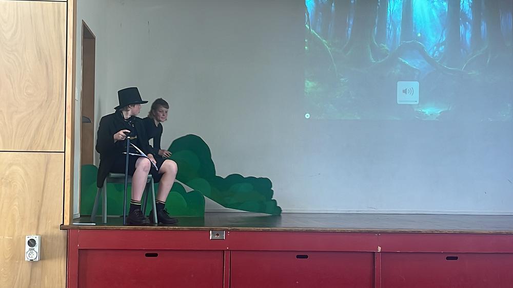 - I wonder if you could have someone backstage prompting the students when to go on and reminding them of what they need to bring