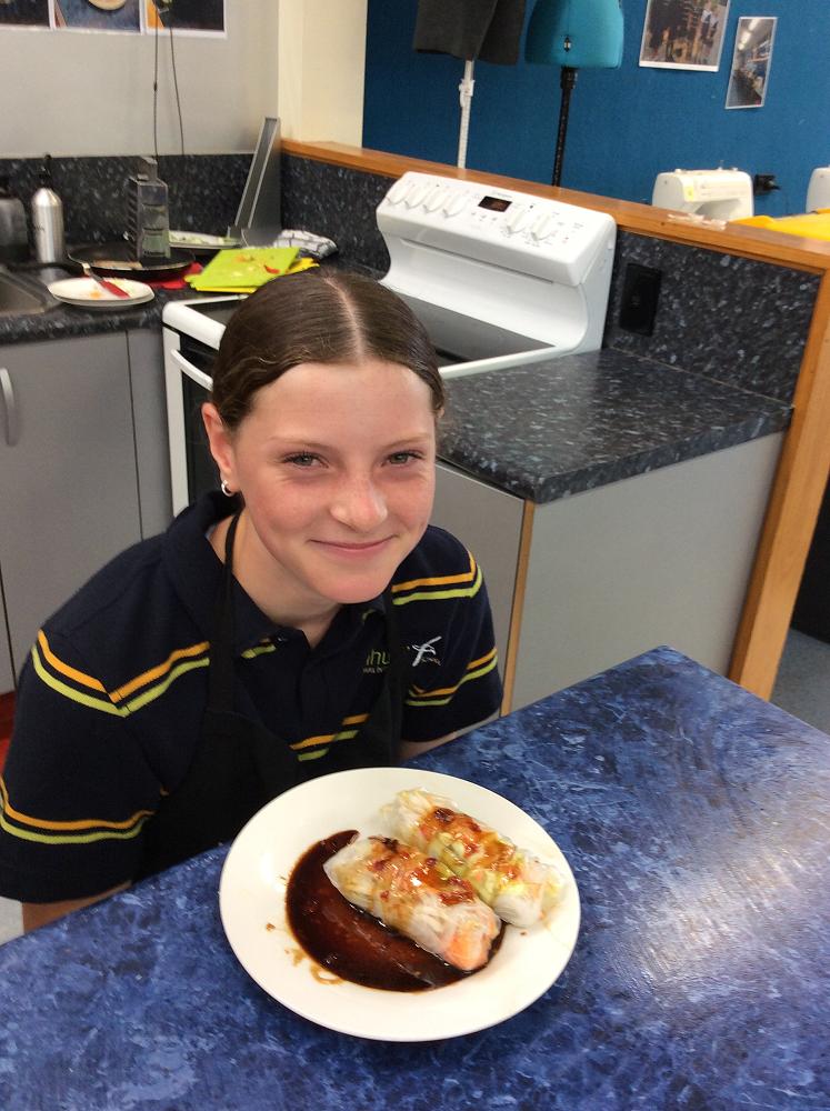 Year 8 students have created rice paper rolls and an apple crumble. In groups, students have been carefully planning and costing 3 of their own recipes that they will be working on over the next few weeks.