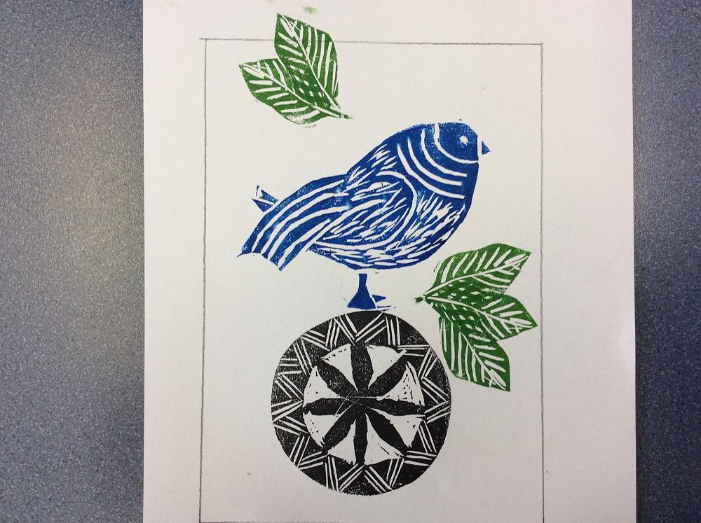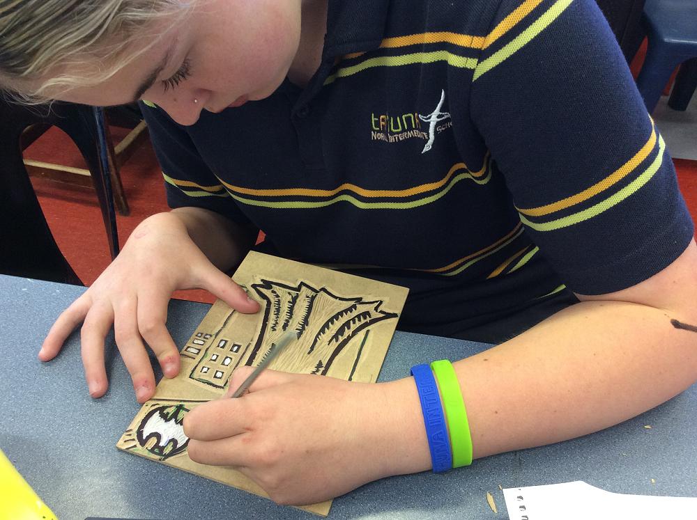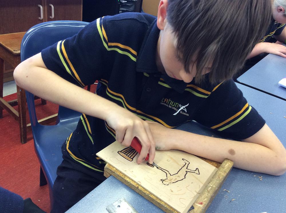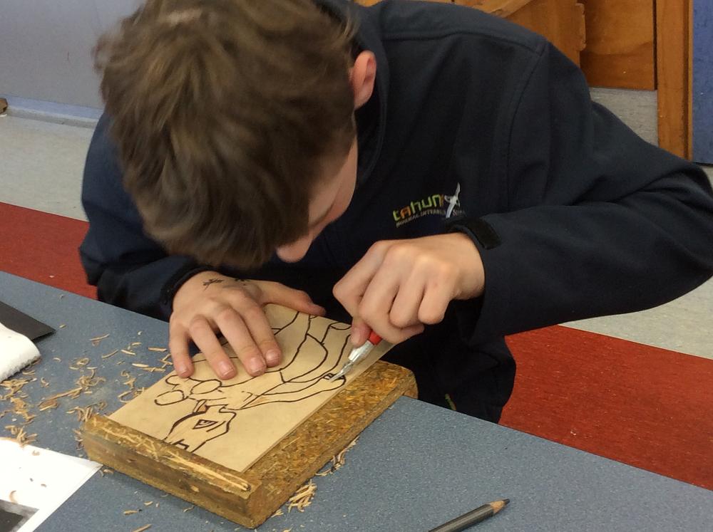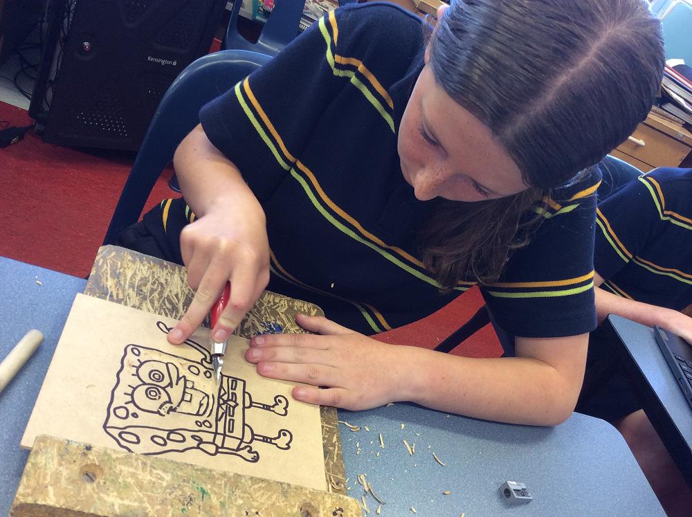 The Year 8 students are finishing off their Lino Prints and going on to Wood Block Prints. An extra step is painting the wood once it is cut out.A lot of concentration is needed to think of what areas are cut out along with cutting safely into the wood.