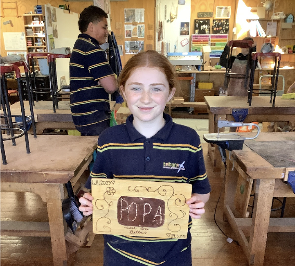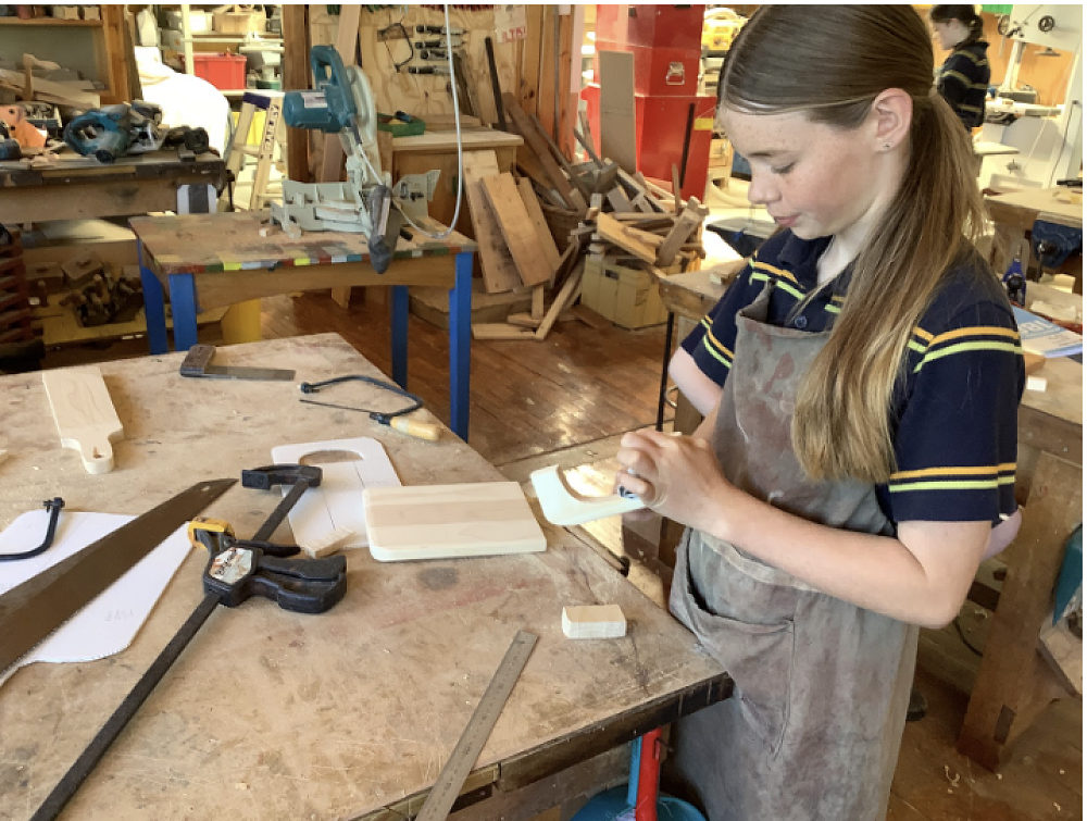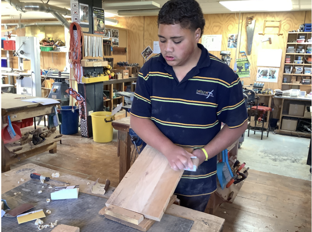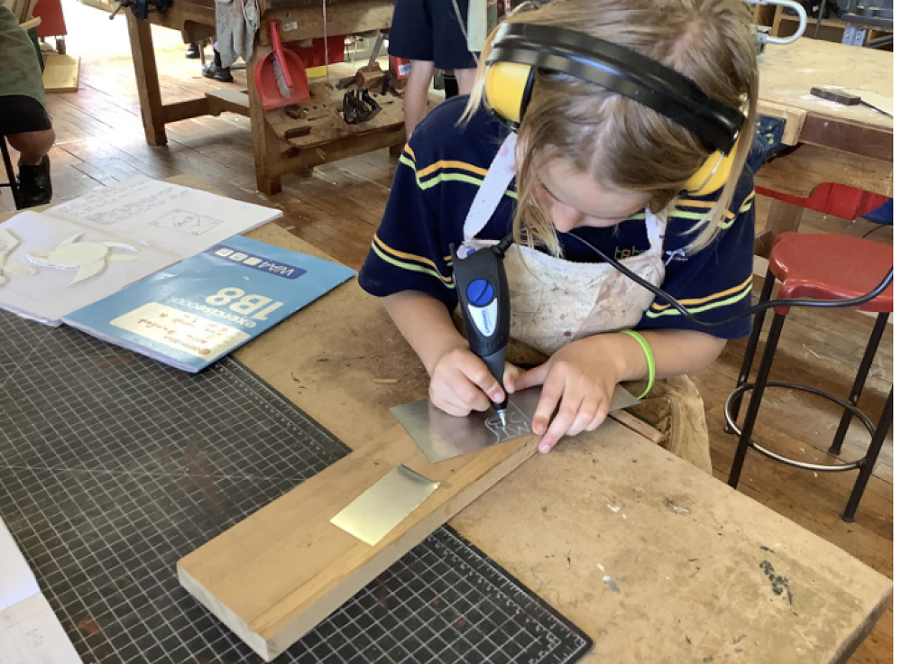 In Hard Materials over the past couple of weeks students have worked with metal, used punches, etching machines and scribers, and have made chopping boards and/or swords (the latter require permission from home before they leave the workshop). The learning focus is on the nature of materials - we have rimu, macrocarpa and pine available. Students choose the type of board and the material - in some cases using widening joints to combine two types of wood, and sometimes incorporating brass handles. There is a lot of sanding involved but some beautiful work is being achieved.