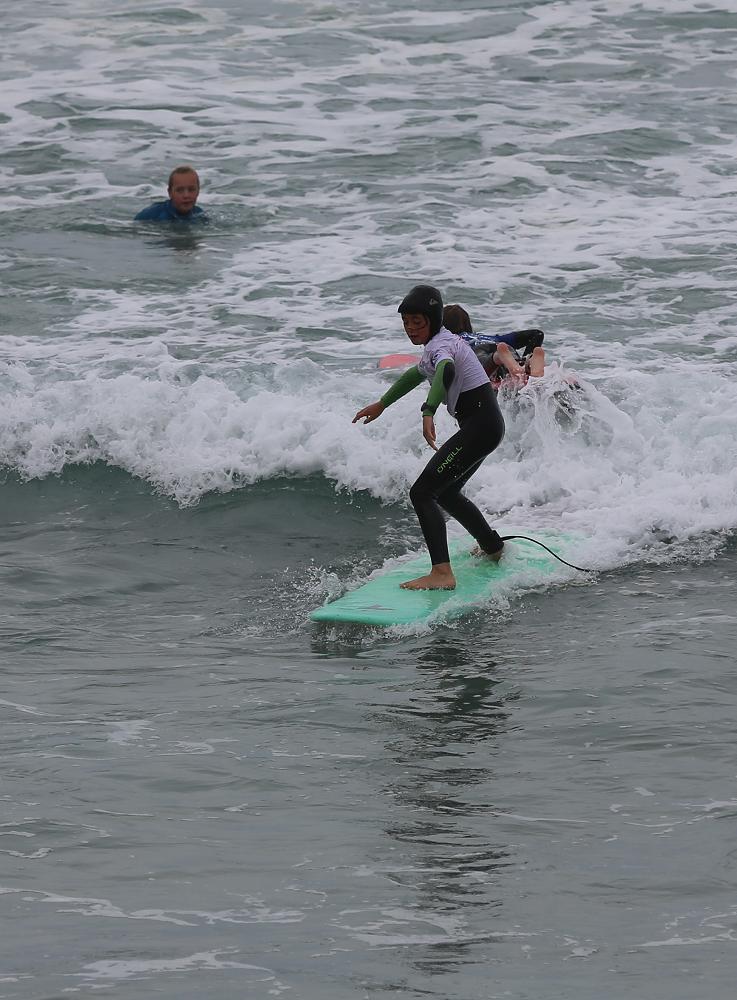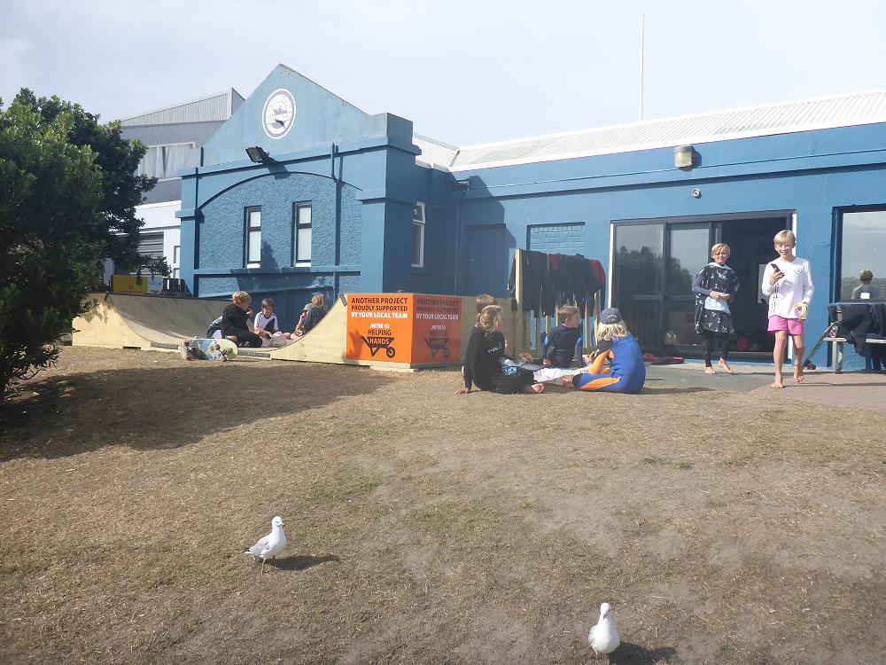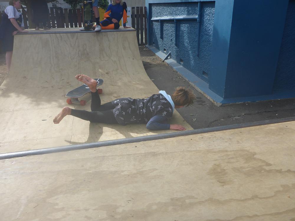 Day 2 saw smaller conditions and the group was able to really get schooled by Craig Higgins Surf Coach. After a classroom session on technique and form we entered the water and had amazing success. Keo, George, Flynn, Flint, Ariana, Nuku, Marley were not put off by the swell and headed out the back with lifeguard Josh McGreggor and 4 parent support. The rest of the crew surfed on the inside and had a fantastic session. Everyone managed to get up on a wave and experience a real surf. We finished up with the skateboard comp on the esplanade and it was too close to call a winner.
