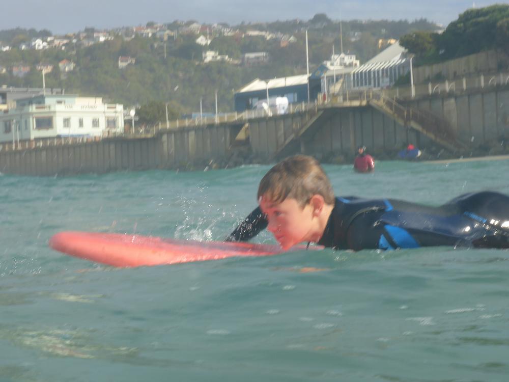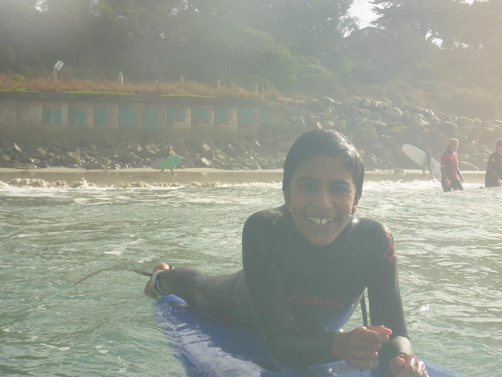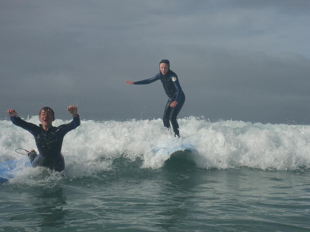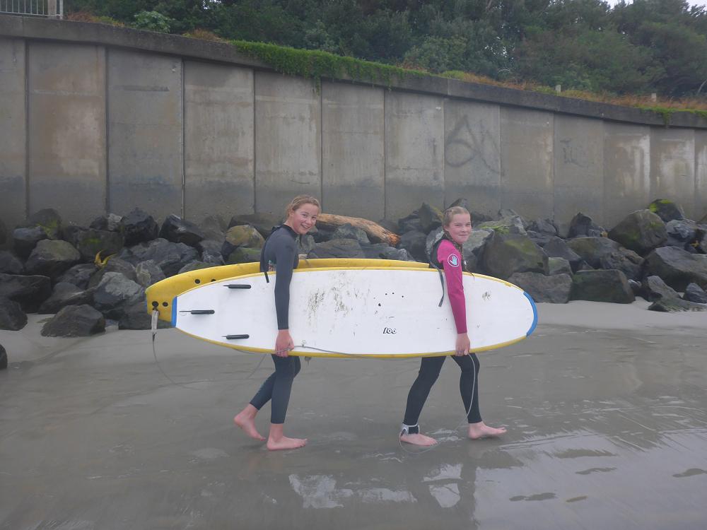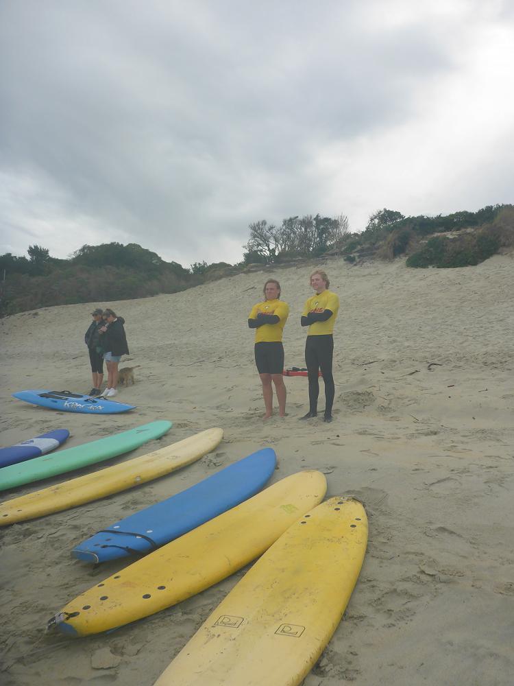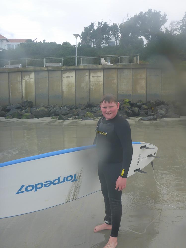 After a delicious lunch of fish and chips we braved putting on wet wetsuits and headed out for the second session. We managed to carry our boards 300 metres down the beach and attempted the session. This lasted for about 45 minutes until it was deemed to marginal and we then put the board on the shore and were able to be in the water with our parents, teachers, surf coaches and lifeguards to get the feel of the raw power of the huge swell and current. It was an amazing learning curve for everyone.