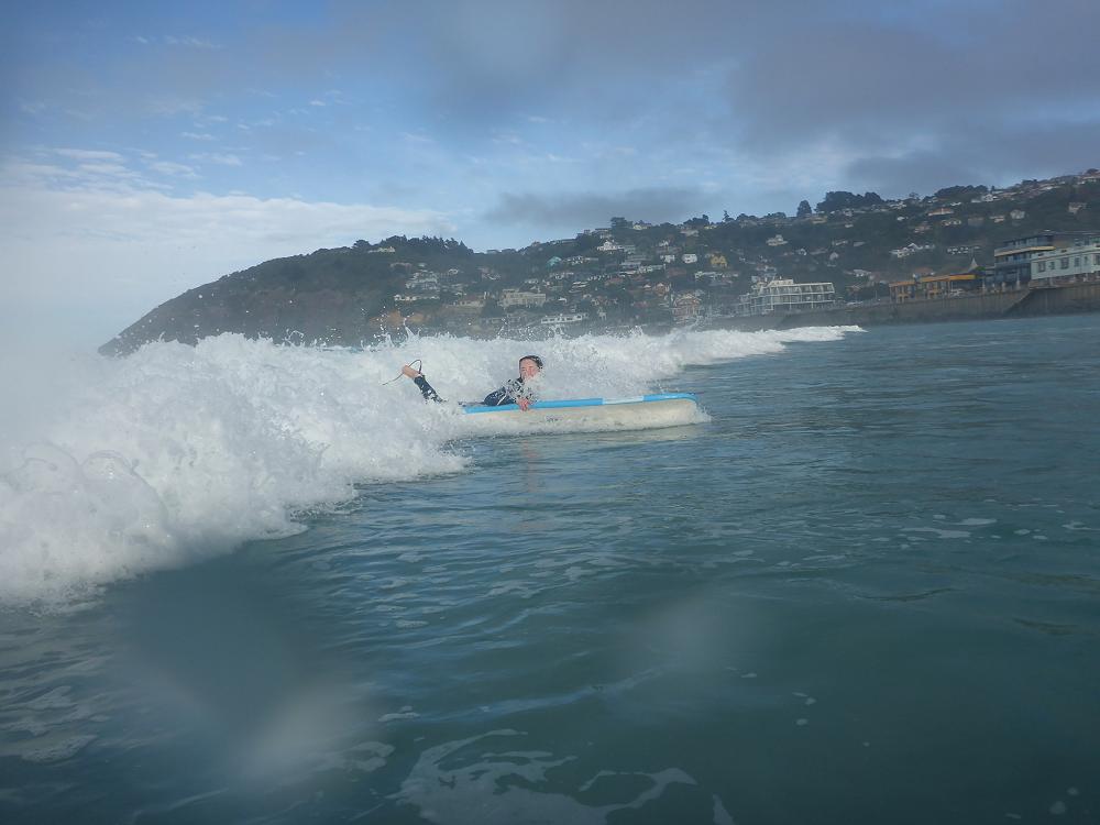 We arrived to the South Coast Board Riders at 8:30am and geared up for our day of surfing with The Esplanade Surf School. The weather was not too bad for this session - the swell on the other hand was big and powerful as Tangaroa blessed us with the opportunity to feel the force of the waves hitting the south coast at St Clair beach.