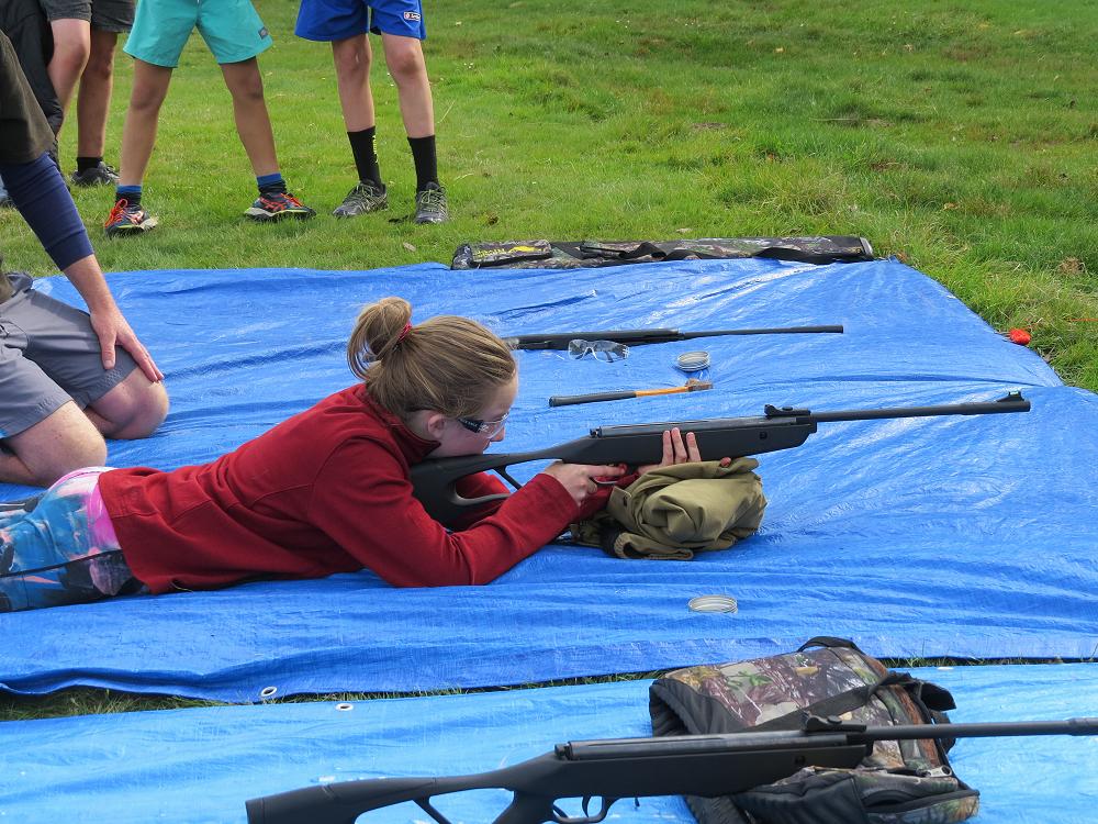 At camp we got to fire an Air Rifle! We had to shoot either a can or a fake rat or possum. To load the gun you need to pull the barrel back until it clicks in place, then you need to put the slugs in. We had 6 slugs and to aim the gun properly you need to line up the sights so it goes red, green, red then BAAM! I shot a can and I felt really excited when I heard the clink as it hit the target. We also wore safety glasses and the parents were really helpful.