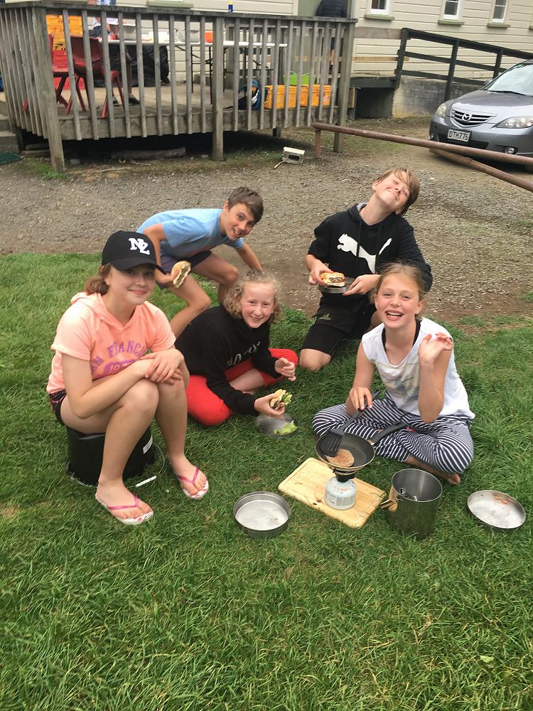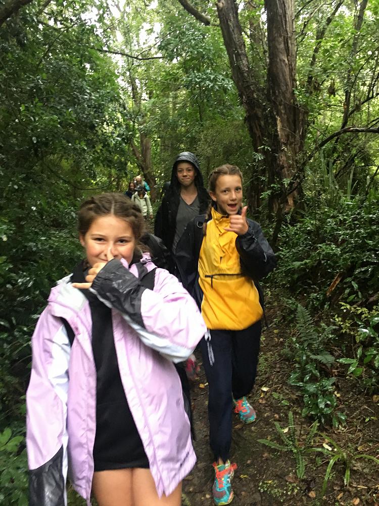 On Tuesday we woke up to rain pelting down on our already sodden tents. Once we made it to the hall, we had a humongous breakfast and got ready for the big day ahead. At around 10am we set off for the 6 hour tramp. About 1.5 hours in, we met Mr Gutbuster. We climbed the slope with confidence but fell so many times, we lost count! At the end of the tramp, we walked back to camp covered in mud.