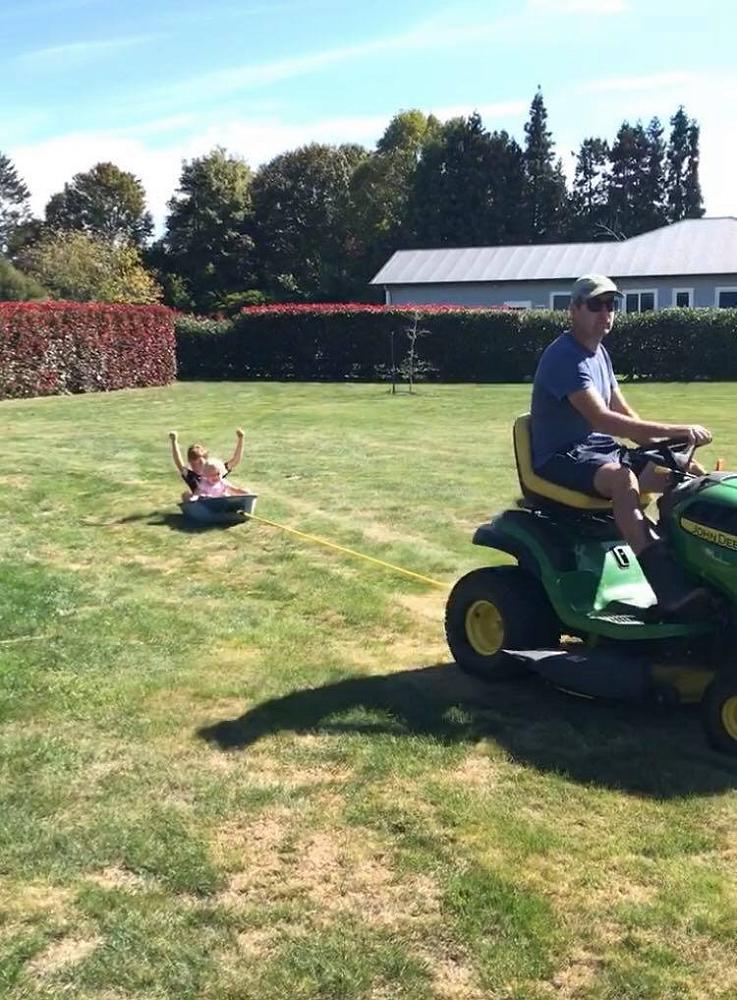 The daily bike adventures to find teddies with Lucas (5) and Abigail (2) are always a highlight. My husband Craig applied some Kiwi innovation and made the kids a “boat” (as they decided it was) by towing them around the back yard behind the mower.
