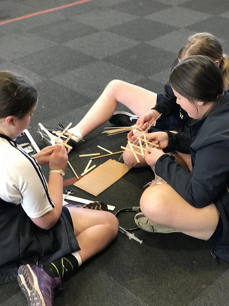 We learnt how to make cardboard hydraulics, and in groups of three or four, we tried to create a hydraulic lift.