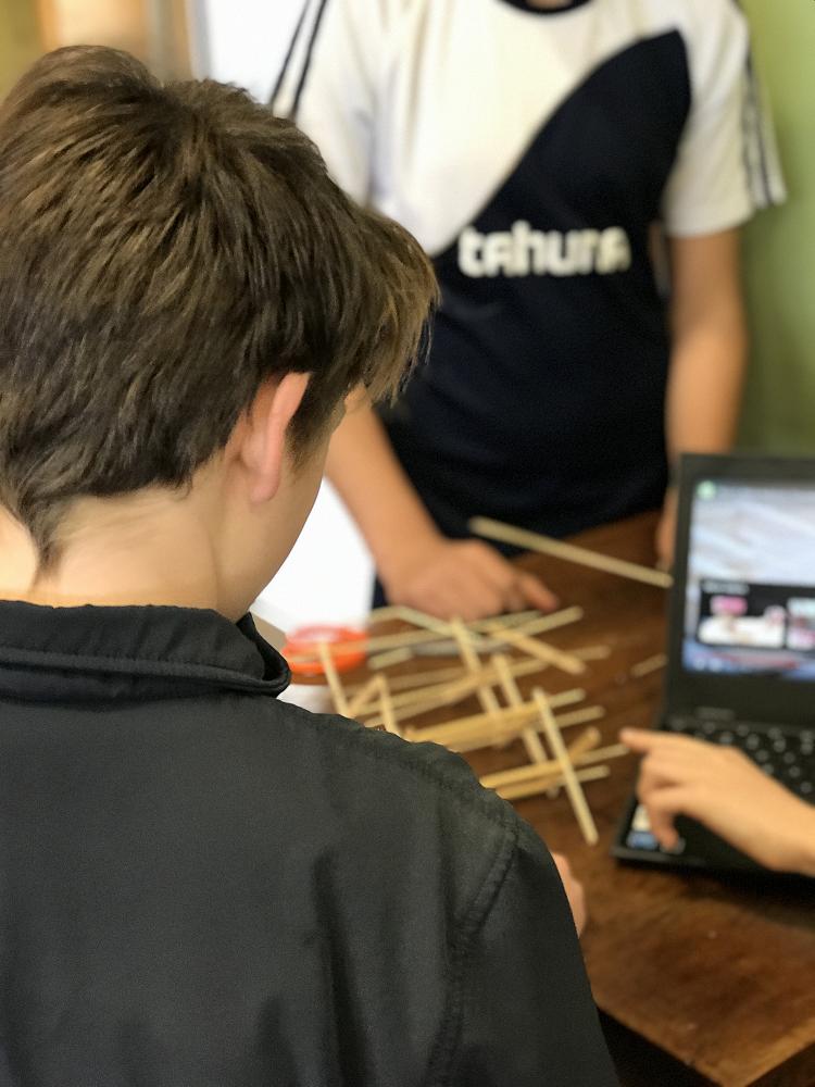 The first step was to collect our materials: popsicle sticks, cardboard, syringes, a piece of plastic hose and kebab sticks. Then we watched a video (multiple times) on how to assemble it after Mr Cook Bonney explained how it would work. Two groups managed to finish in the first session… which was quite impressive!