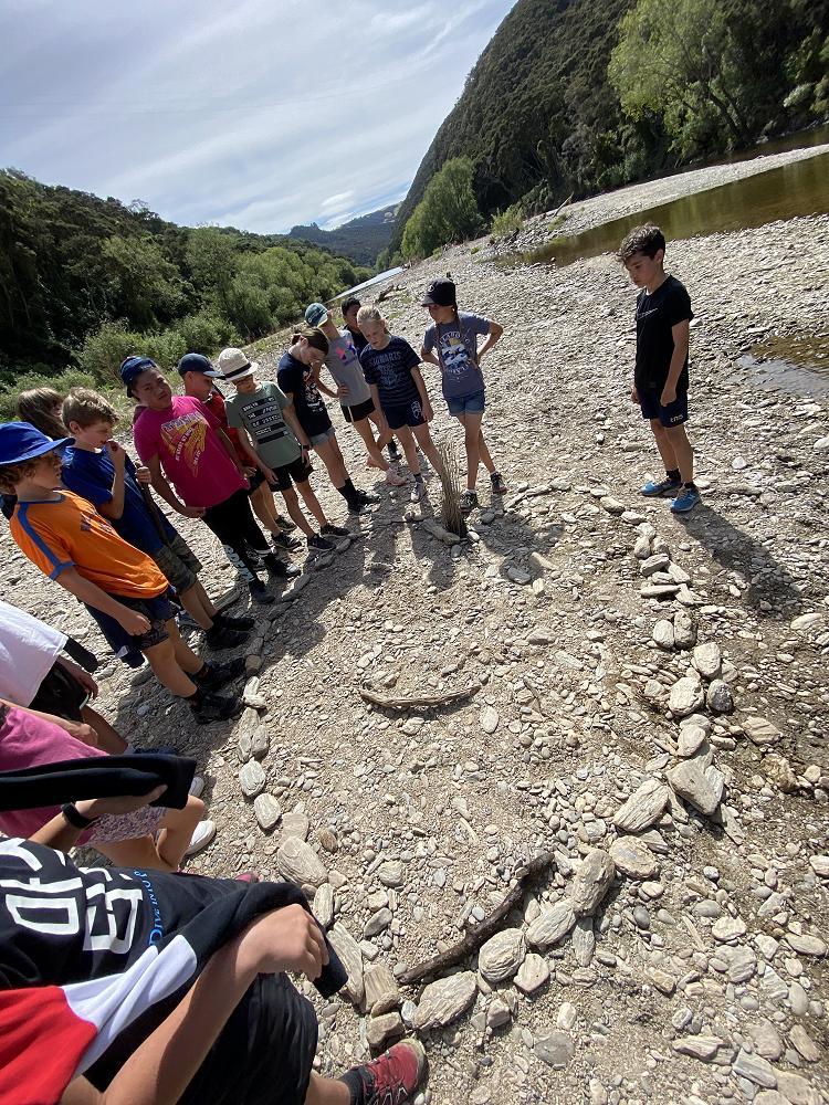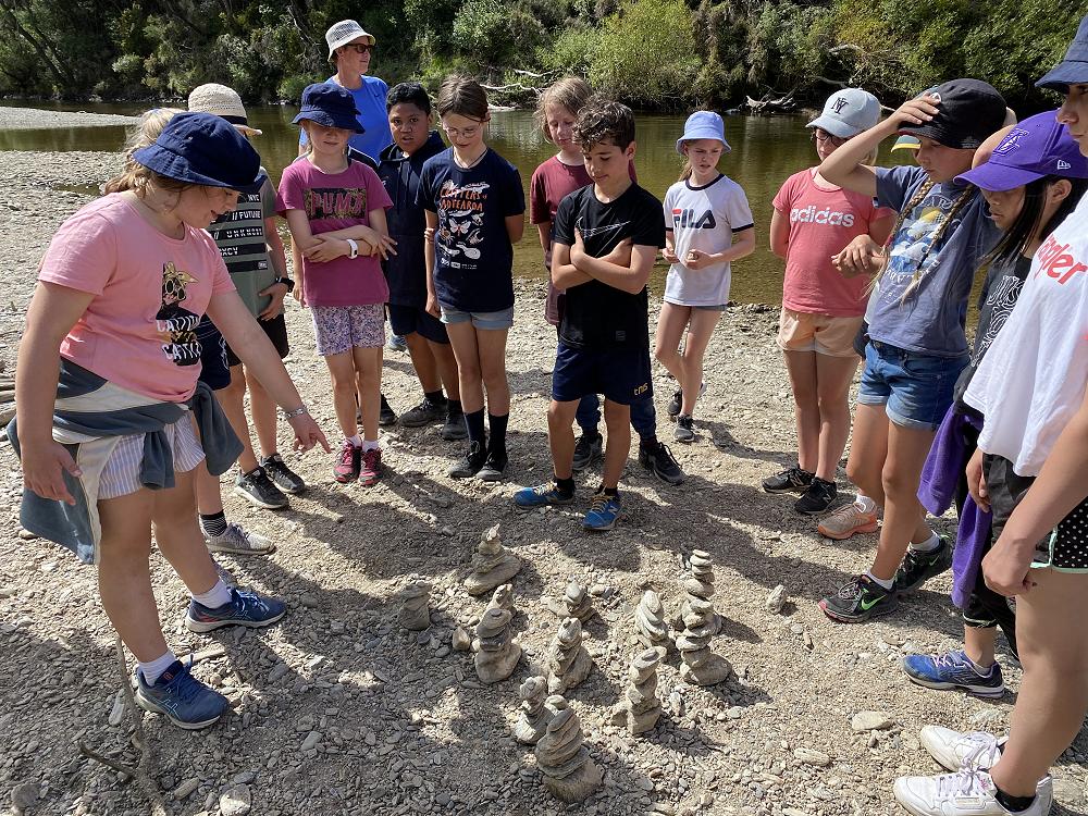 It was about a 20 minute drive there. The tramp was not near anything it was just surrounded by farms and fields. It was a very fun walk and there was a beautiful river beside it, where we stopped for lunch. It was an 3 hour tramp walk and all the up hills and down hills were tiring. It was so easy to fall over but that’s ok only 2 class students fall over. About every 10 minutes there would be a little stream going into the river and there were little rocks for you to step on to not get wet. There were a lot of fantails, I even saw two fantails fighting and on the way back I saw a pretty bellbird singing a beautiful song. After walking for a while we stopped at the river for lunchtime. After we ate, all of the class were skipping rocks while l I was making rock towers of 6. After they had done skipping stones, Miss Walsh said there was a competition and it was whoever built a really cool thing out of rocks wins. I was very happy because I was already done. After we did that we started walking back that’s when a very narrow pathway and there was a very big drop so we went single file one by one. We went past that bit and that’s when I saw the bellbird and the two fantails fighting. We went down a very steep pathway and if u fall down that would hurt so we went very slowly and steady. We finally made it to the bus and we went over a bridge and we had a look over the hole river. Then we headed to camp.