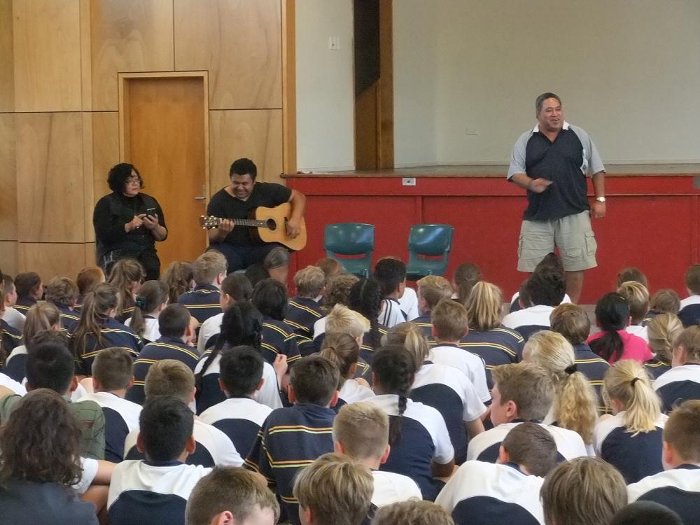 Year 8 classes are enjoying their Pasifika topic which has included hands on experiences at the Otago Museum and a visit from T.J. Tautua and Mrs Lale. T.J. entertained with his musical skills and Mrs Lale shared some aspects of Samoan culture and the tsunami devastation her village in Samoa suffered several years ago. Tahuna was also supportive in the fundraising for the rebuild. One of the highlights of their visit was the explanation from Mr Lale on the significance of his tattooed legs and mana of the Matai. This was a most interesting experience.