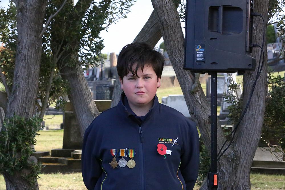 All of the students represented Tahuna Intermediate well and they were very respectful at both ceremonies. Devon Keen was lucky enough to be able to wear his Great-Grandad's medals to the dawn service as he went up to lay the wreath. Sarah Quinn wore her Great-Uncle Stan's medals from World War 2 and Jonathan Richmond wore his Great-Uncle Gus' medals from World War 1.