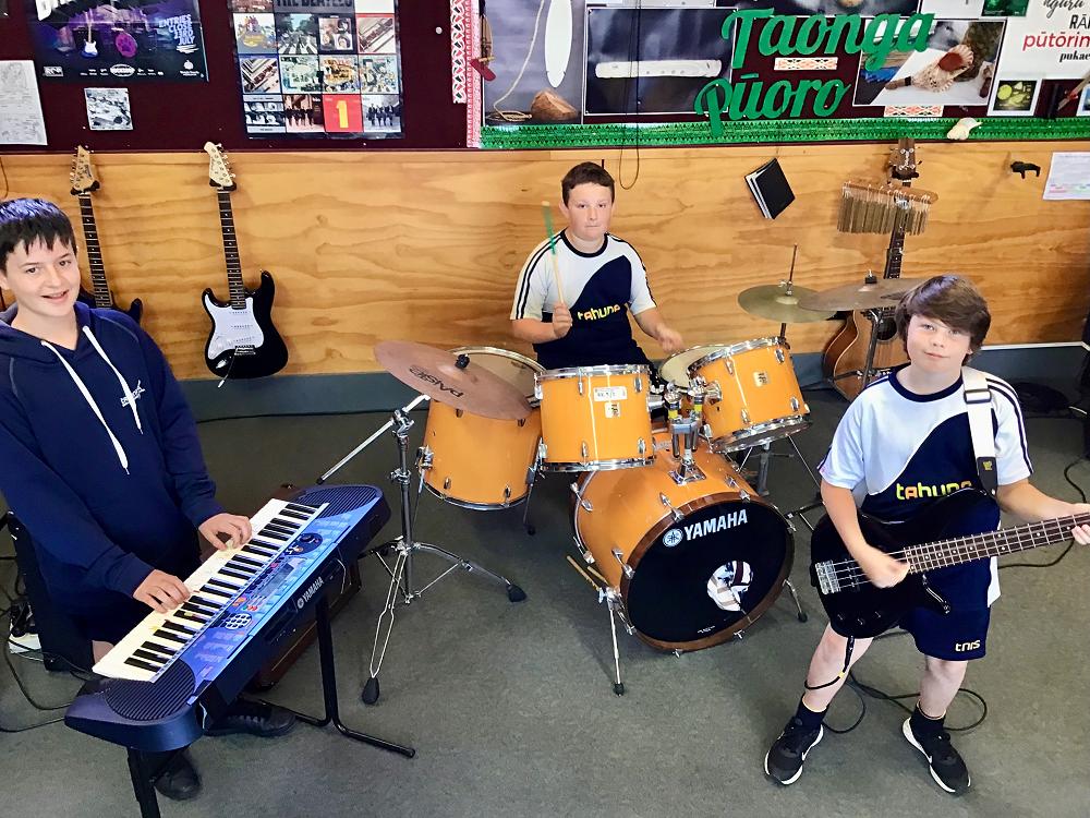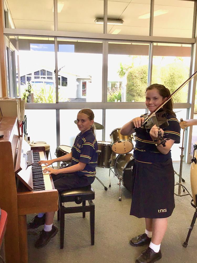 At interval and lunchtime students get together to form bands and practice. All sorts of combinations of instruments are explored in the music rooms. Band and orchestra rehearsals continue in the studio.