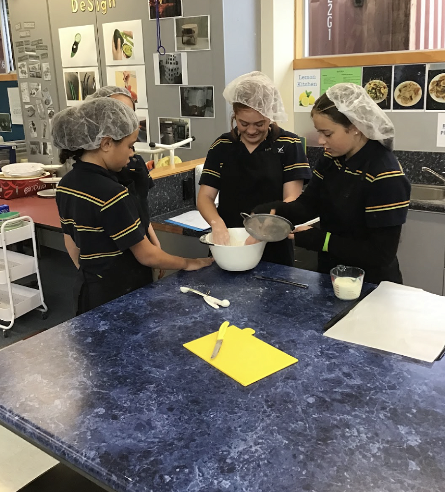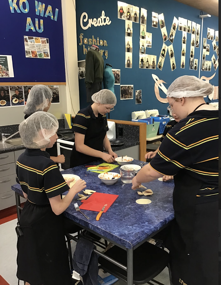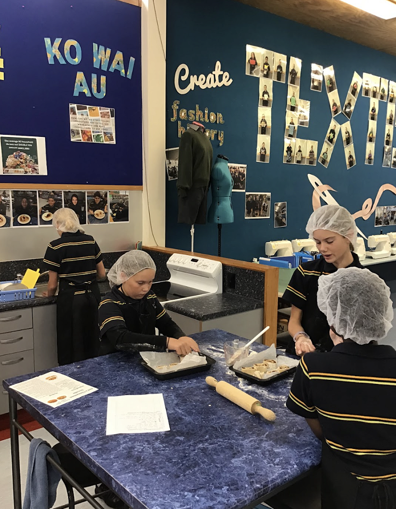 Year 7 students continue gaining experience in the kitchen. Understanding measurement, practicing knife skills and stovetop safety whilst creating products. They will be going on to look at Kiwiana foods and designing their own recipes.