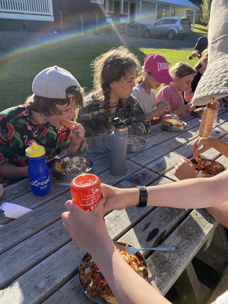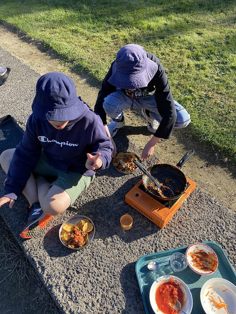 The weather was a wee bit misty, showery and cool, but we knew the forecast was mint! On arrival at Tirohanga we completed a loop walk, had lunch, did loads of team building work, drama linking to our ko wai au unit and fun problem solving challenges before the students were let loose on gas cookers (under adult supervision of course...).