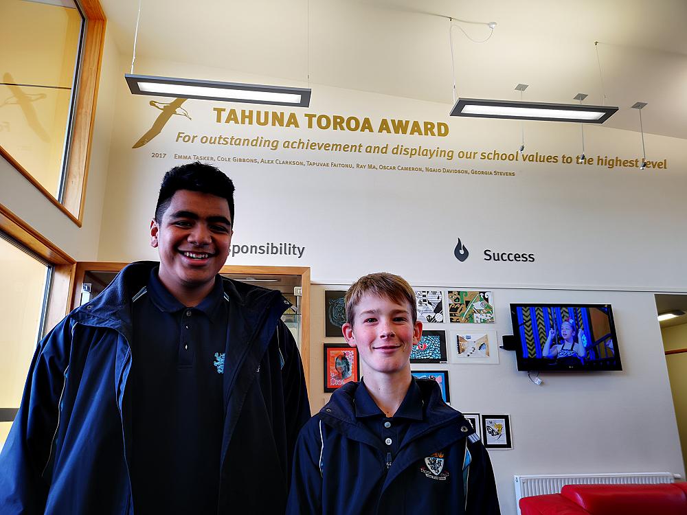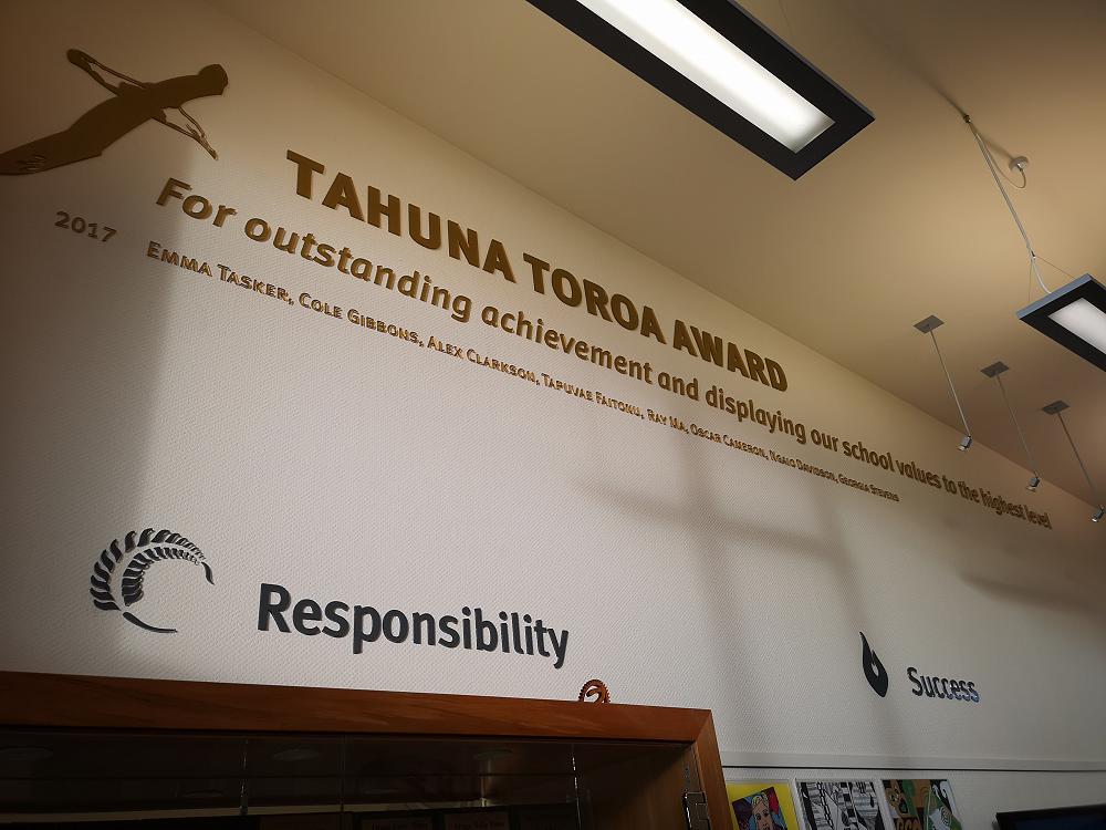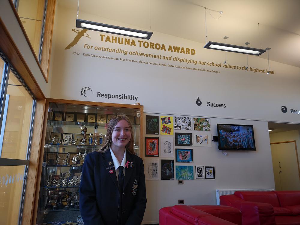 We have a new display in the foyer. To celebrate the successes of our highest achievers the Toroa Award was initiated last year. The first eight recipients were chosen to recognise their efforts in 2017. We have managed to catch up with three of last years students for a photo and would love to see all of last years recipients for a photo if possible.