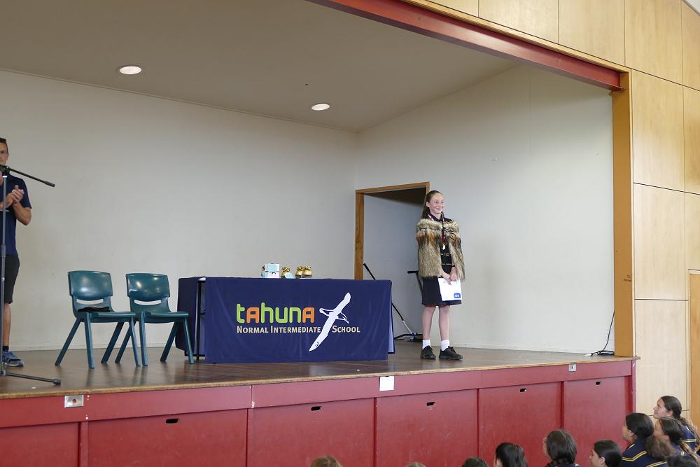She has her Citizenship badge, been a School Councillor, Road Patroller for 2 years, actively supported the SPCA Cupcake fundraiser, Assembly signer, involved in the Water Testing research, Open Night helper, Marae Week Tuakana, Netball Umpire at Edgar, Library Monitor and was selected for the Stewart Island Leadership Camp. “You manifest goodness in others around you,” was said from one of the accompanying staff here.