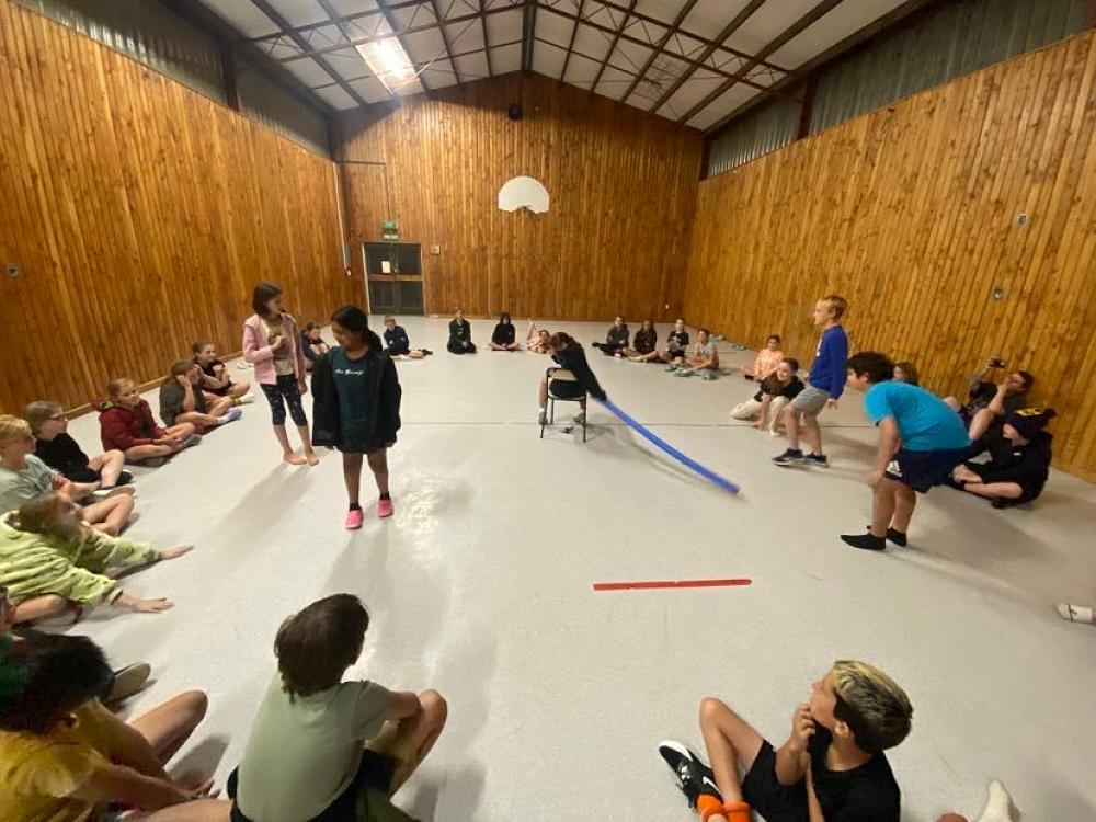 At camp I went on the Flying Fox and it was really fun. But then it hailed and we went into the Lounge room. After it hailed Miss Walsh stepped outside and it started hailing and raining again- what a coincidence. So we went into the gym and played a game where on person was blindfolded and had a blue noodle (You can have any colour noodle) and they sit on a chair with keys or something small under it and then the teacher calls someones name and they all have to try and get the object without getting hit by the blue noodle. - It was really fun!