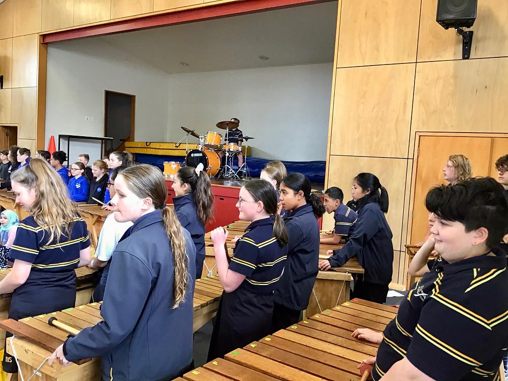 On Monday Tahuna hosted a massed marimba celebration for 190 students from 10 Dunedin schools, filling the hall with music and mallets.