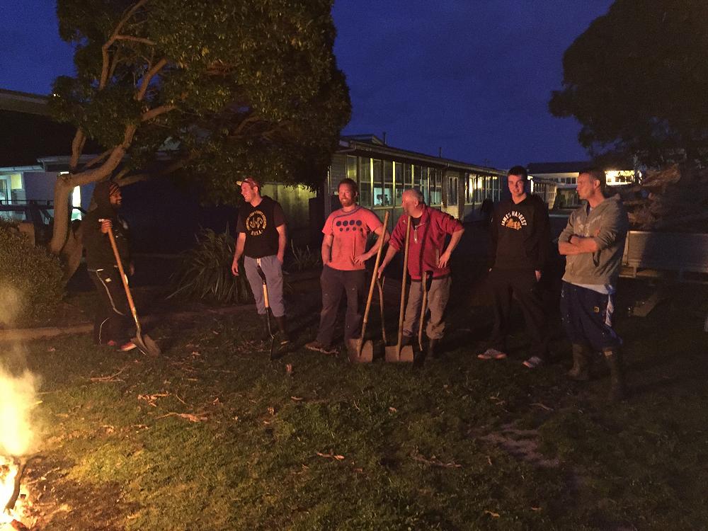 What a way to wrap up our Marae Week experience. At 3am members of the staff assembled and lit a huge bonfire which was the means to heat the iron. The iron was kept glowing hot until 8am. At this time the ashes from the wood used were extracted from the pit leaving the iron. Then 6 baskets containing meats and vegetables were placed over the iron, soaking wet sheets followed by sacking were then placed over the baskets. As the steam billowed from the pit earth was then used to trap the steam and after 4 hours of cooking lunch was ready. The year 7s were gathered by the pit and individually students chose what they wished to eat. Everyone really enjoyed their portion many coming back for more. Fantastic day had by all capping off a wonderful Marae Week experience for our Year 7 students.