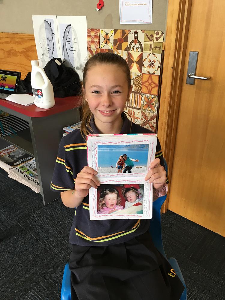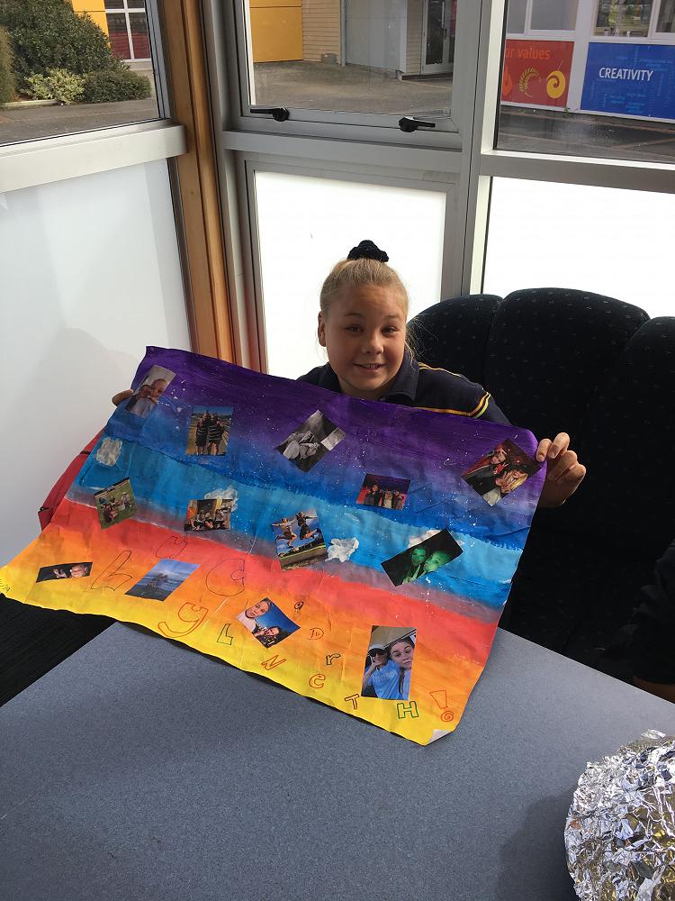 I decided to make a model of a fale (a traditional Samoan house) with photos of my friends, family and I. I created this because the fale represents my culture and the poles holding it up represent my family, myself, my friends and having fun. The base represents my foundations and values and the top will have a tapa cloth from Samoan and Niuean sides and Scottish tartan cloth to represent this side and an NZ/Maori flag to represent this as my home.